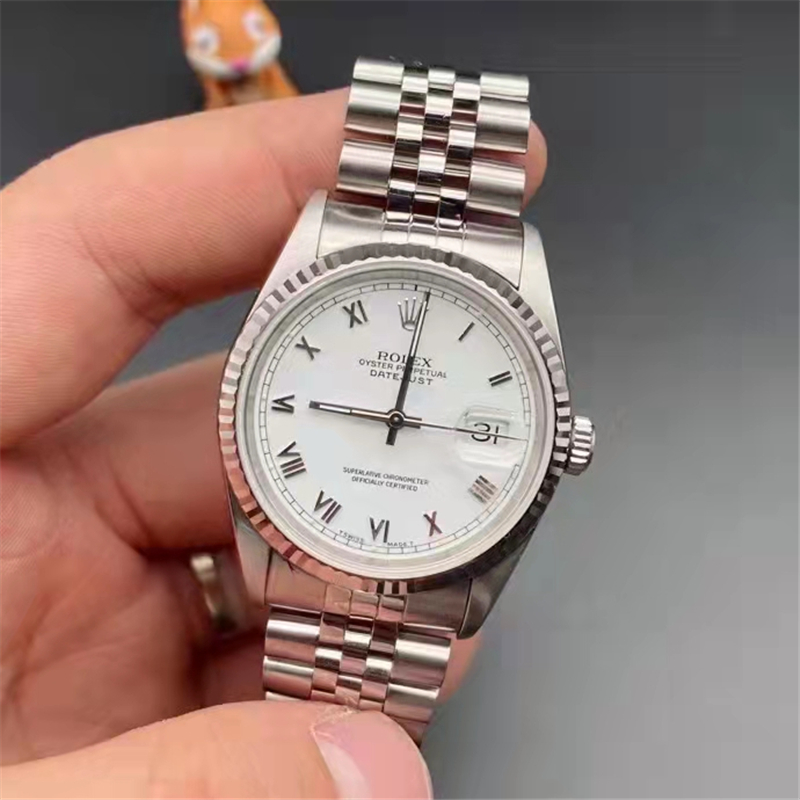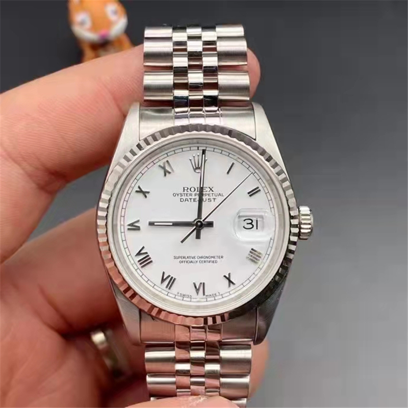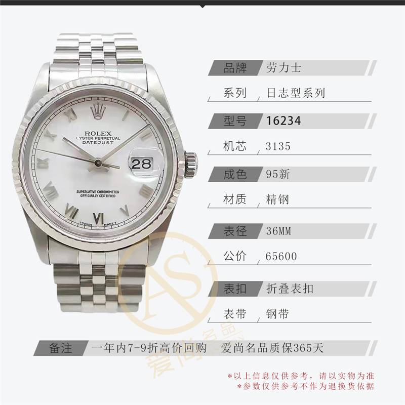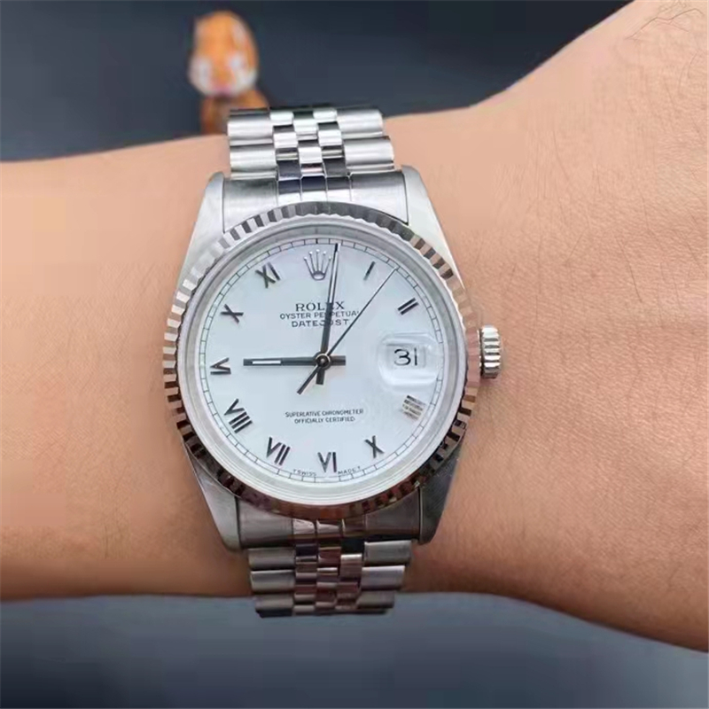 劳力士日志型系列 型号16234 白盘罗马刻度 36表径 单表 18K白金表圈 参考公价65600元 腕周18cm左右