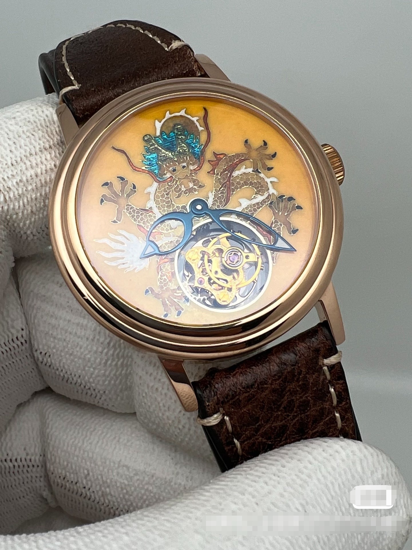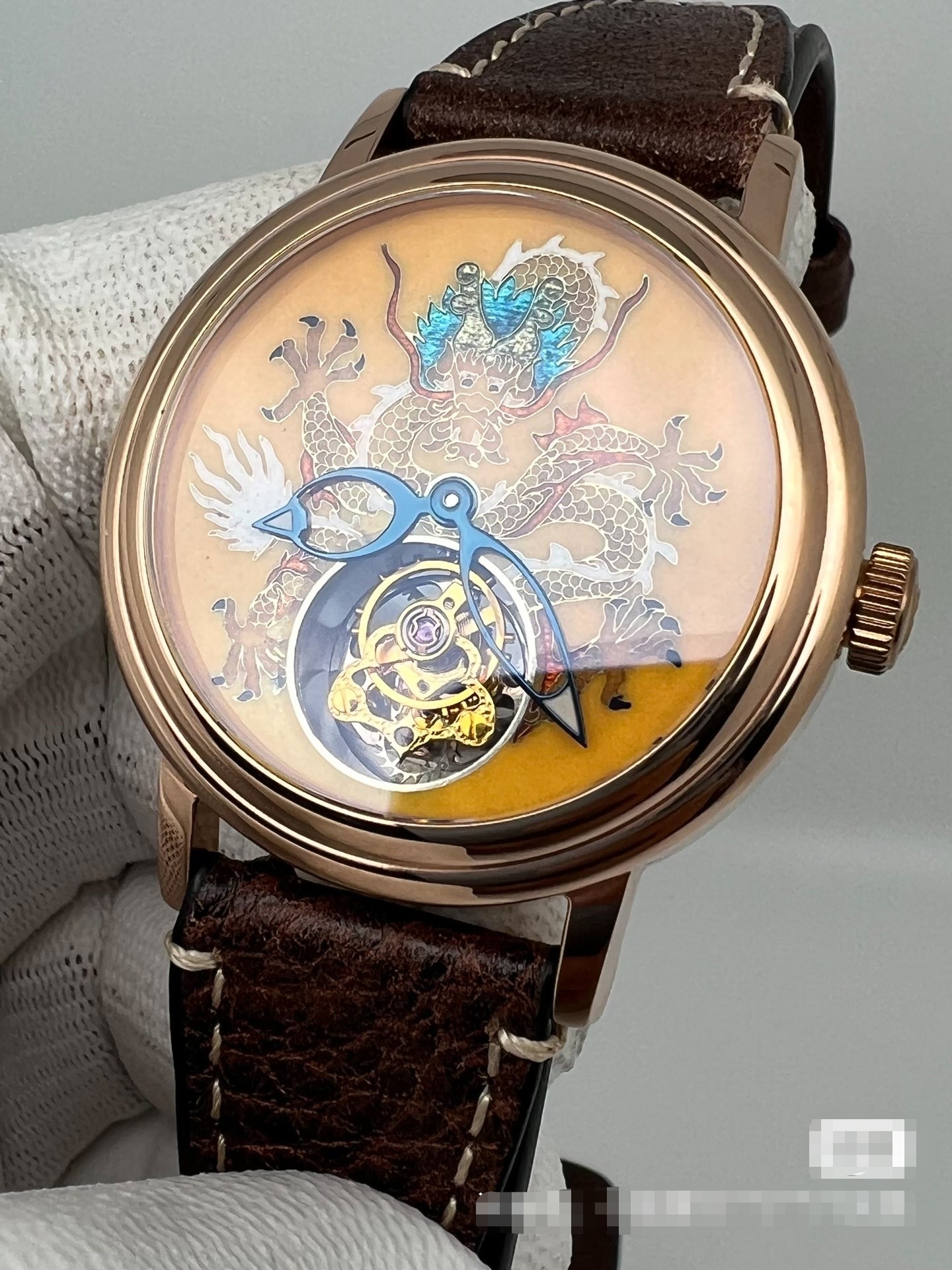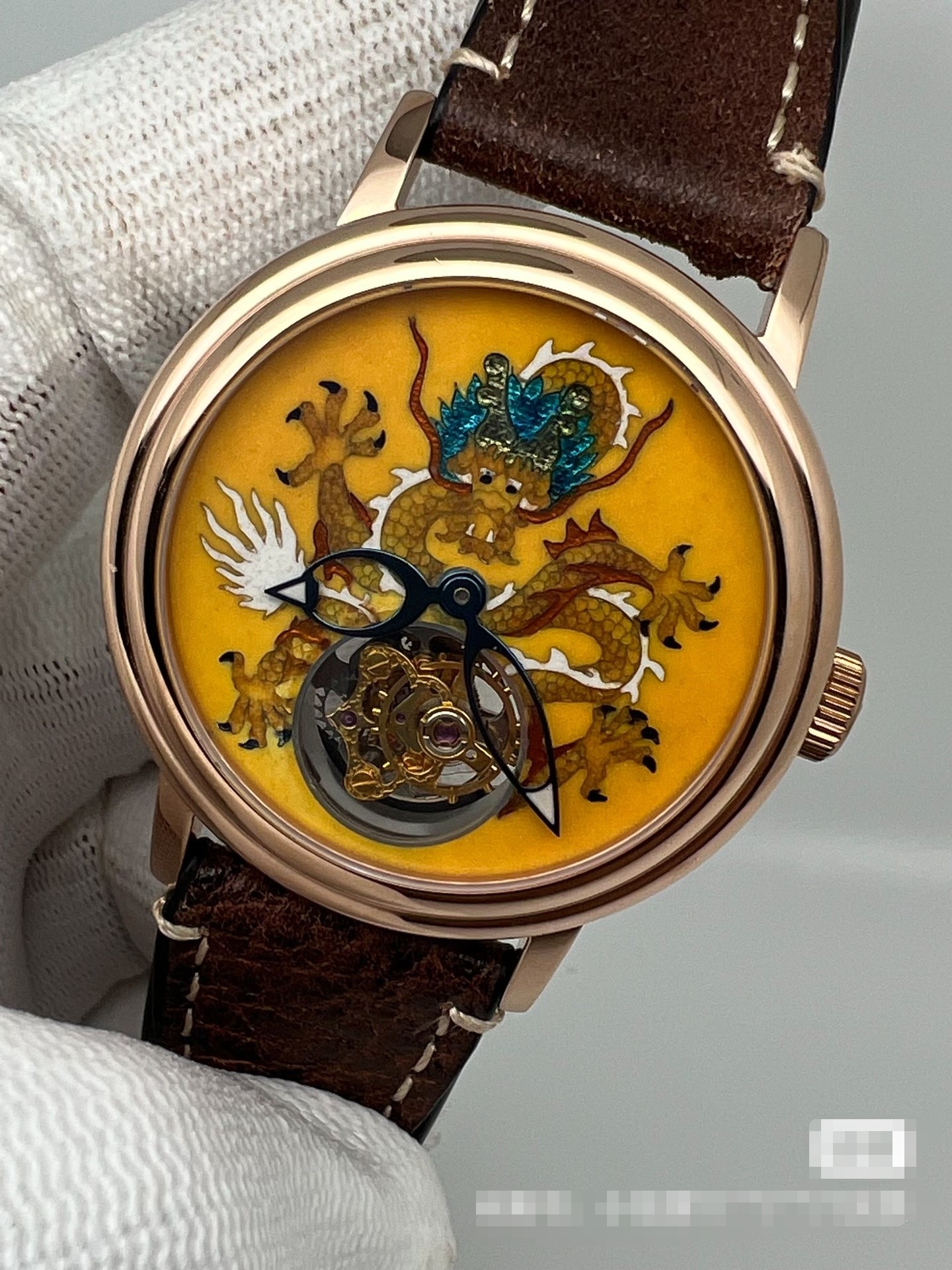 北京表,中华陀飞轮,黄龙,银胎掐金丝珐琅,表径:41毫米,仅此一只。