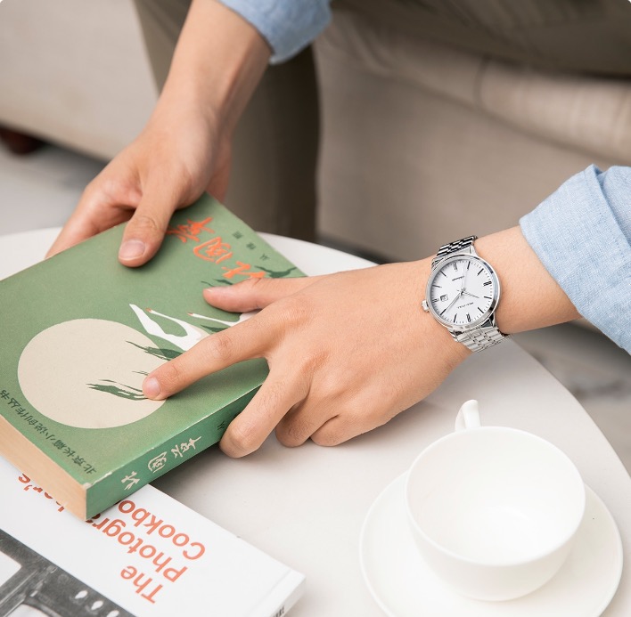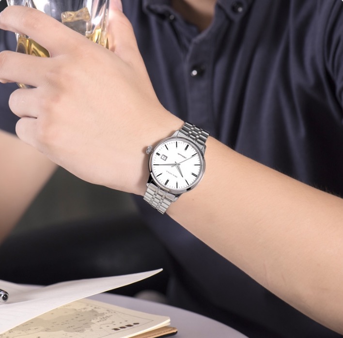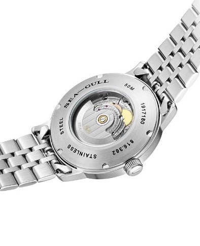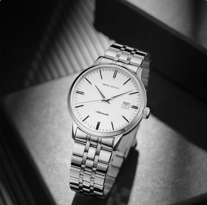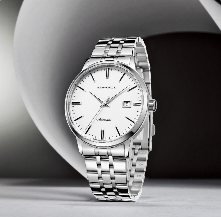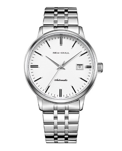 海鸥Sea-Gull 国民系列商务日历大三针设计 自动机械机芯钢表带国表男表白色表盘经典钢带816.362-WHITE