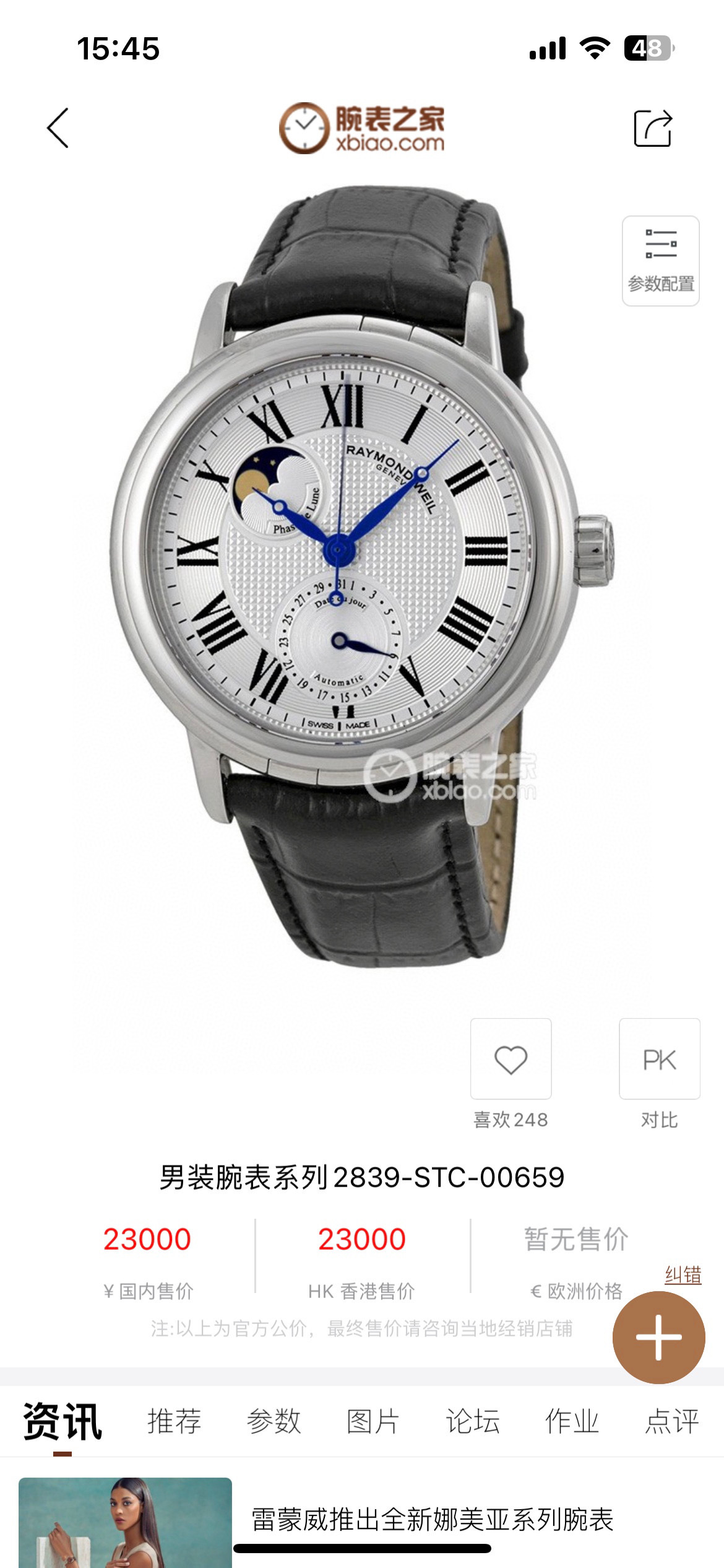 雷蒙威机械男表,40mm直径,月相功能,国行全新全套9月卡,好价秒发