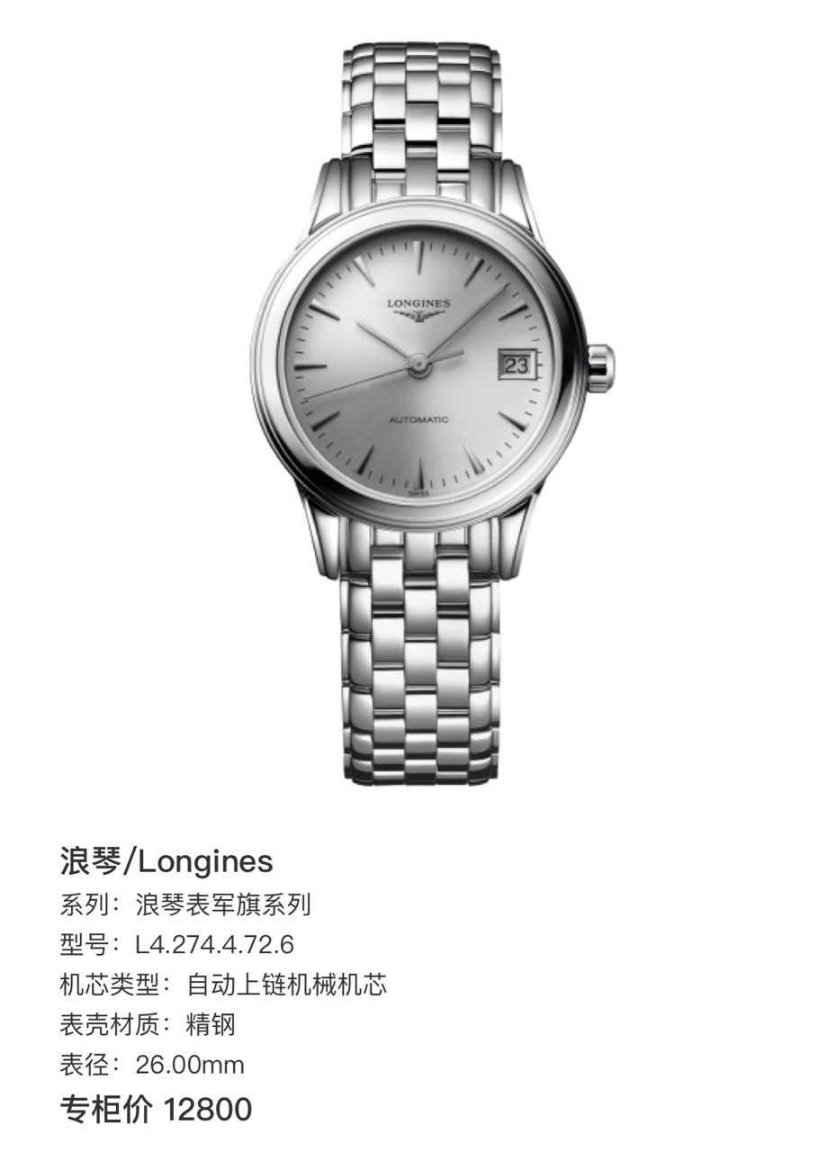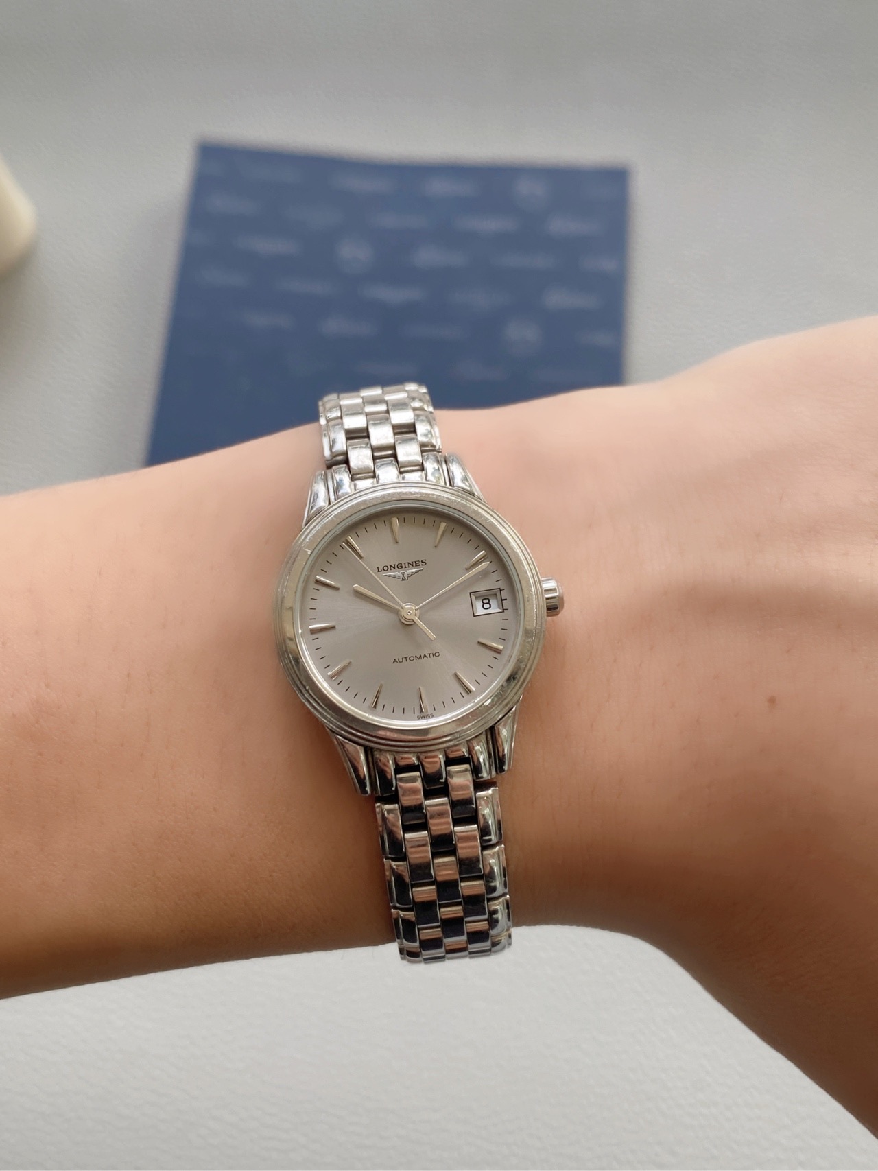 浪琴 军旗L4.274.4.72.6系列机械女表,表径26mm 日期显示,简约灰盘上手优雅。新款镂空机芯 极品单表原始成色95新 官方工价12800 现货好价