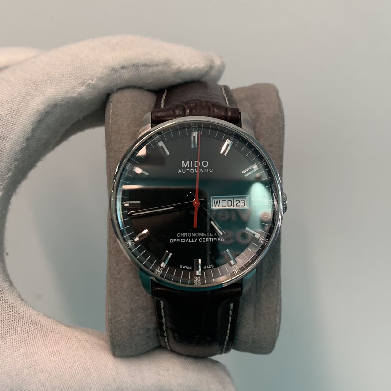 美度指挥官系列,品牌设计灵感源于各国出名建筑。指挥官系列高精准度天文台认证机芯,防磁防震效果极佳。帅出新高度,将商务表的老气一扫而空,上手亮眼。日历日期显示简洁明了,超级夜光清晰读时。隐藏式表冠贴心防刮碰,大气又舒适的一款腕表。