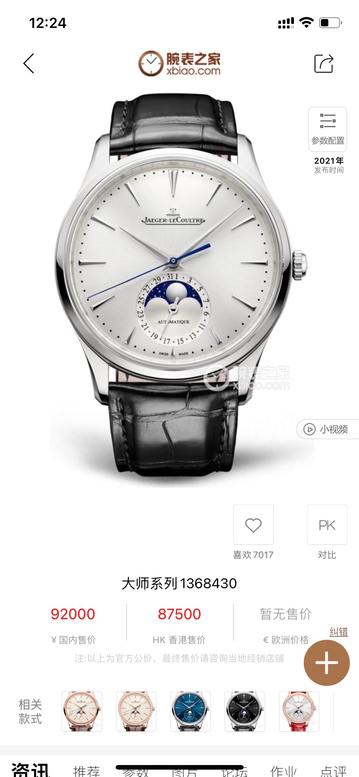 新款积家大师月相Q1368430 39表径 经典正装 全新全套23年9月未使用品 专柜92000 现货好价出!