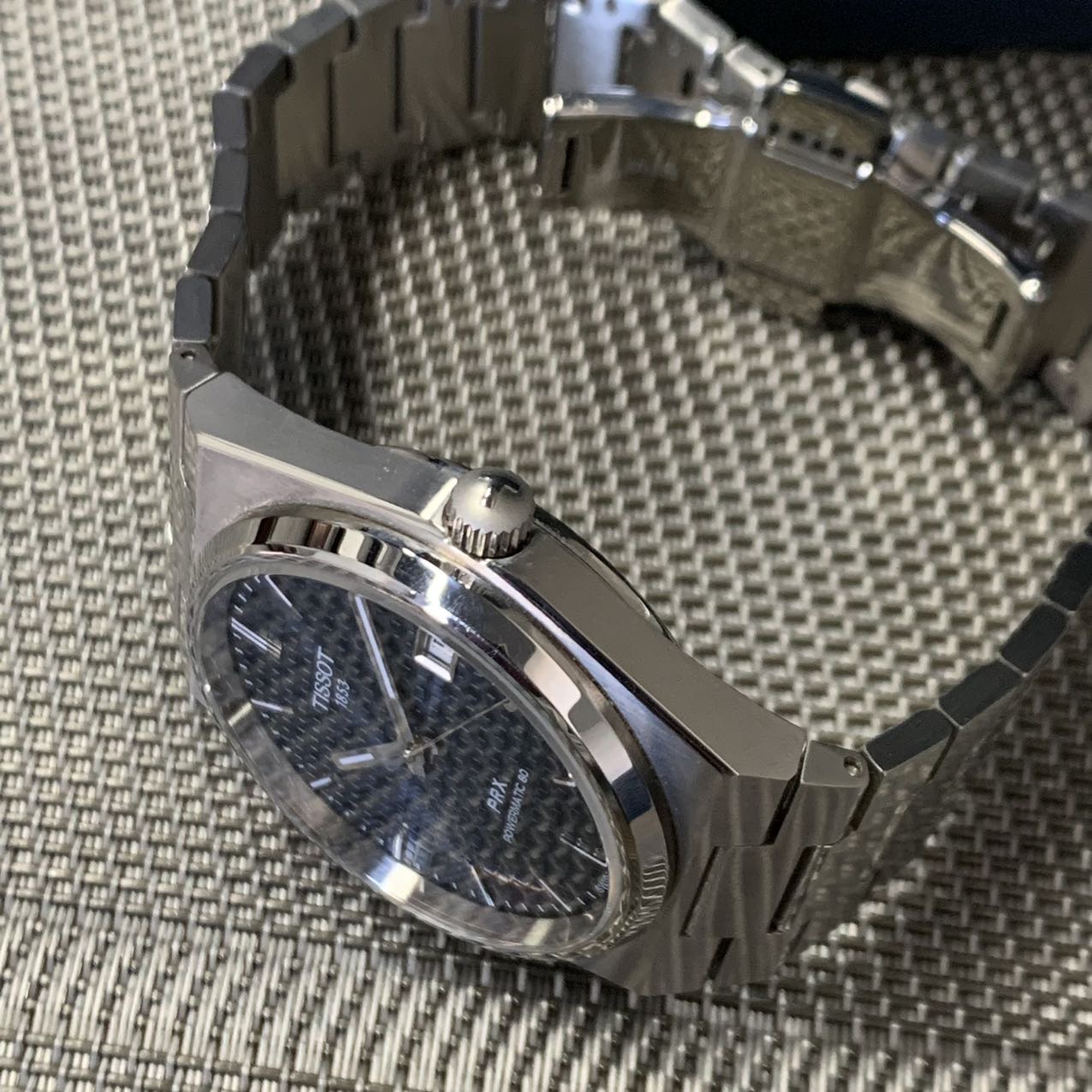 这款2021年推出的超级玩家系列经典蓝色盘面腕表采用精钢材质打造表壳,直径为40毫米,可以适配大部分人的手腕佩戴起来也很舒适。腕表表壳及表带经过拋光、拉丝两种工艺处理,很有质感。在表壳另一侧设有一枚精钢表冠,表冠四周则设有防滑纹路,起到防滑作用,方便佩戴者调节时间。