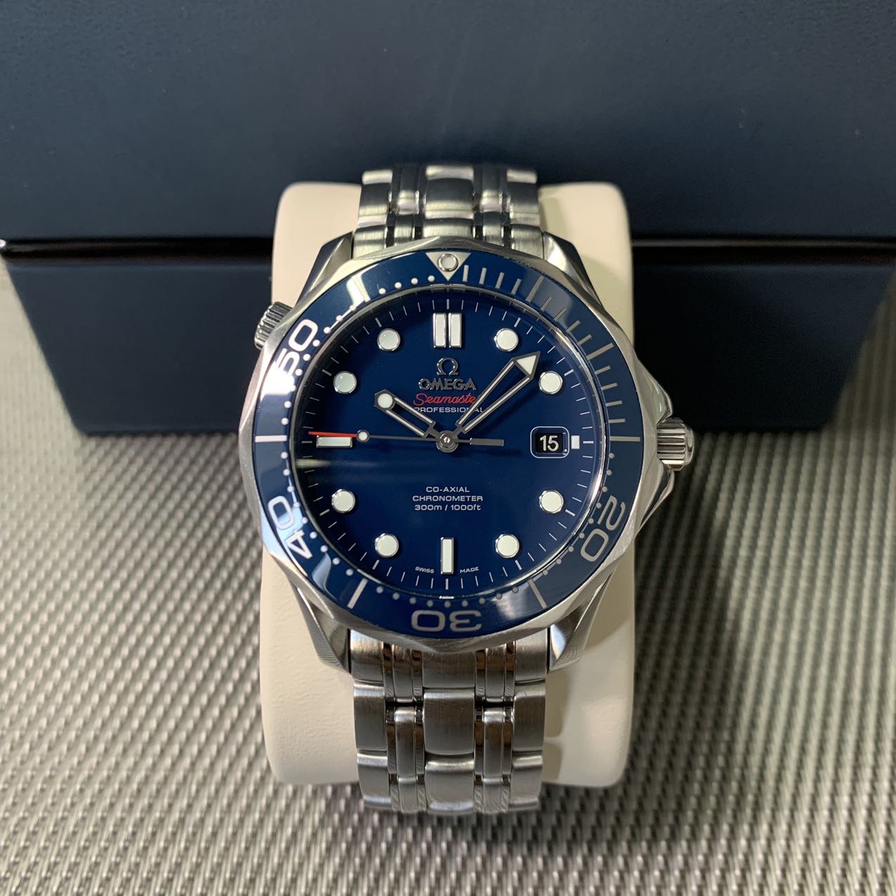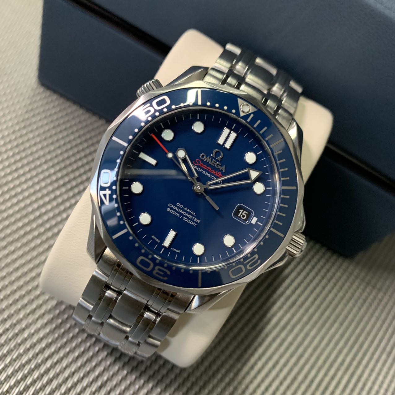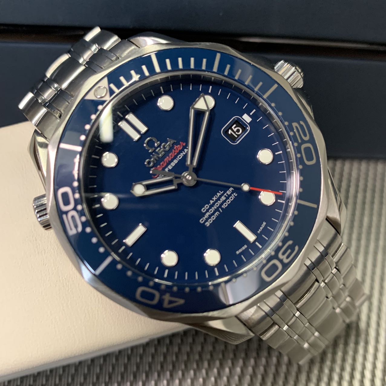 深受大家喜爱。腕表采用精钢打造表径为 42mm,表圈采用蓝色陶瓷饰有白色珐琅潜水刻度彰显了持久纯净的美感。表盘同样以陶瓷精制而成,腕表日历窗口设计在6点钟位置,令外观看上去更加的对称平衡。作为潜水腕表它拥有 300米防水性能,圆锥形排氦气阀门采用欧米茄专利技术打造,即使其在水下被意外打开,腕表依然具备 50米的防水性能。腕表搭载了欧米茄8800机芯,有55小时动力储存。波纹边缘纹饰搭配海蓝色表盘,在戴上它的同时仿佛就已经身处大海一般。