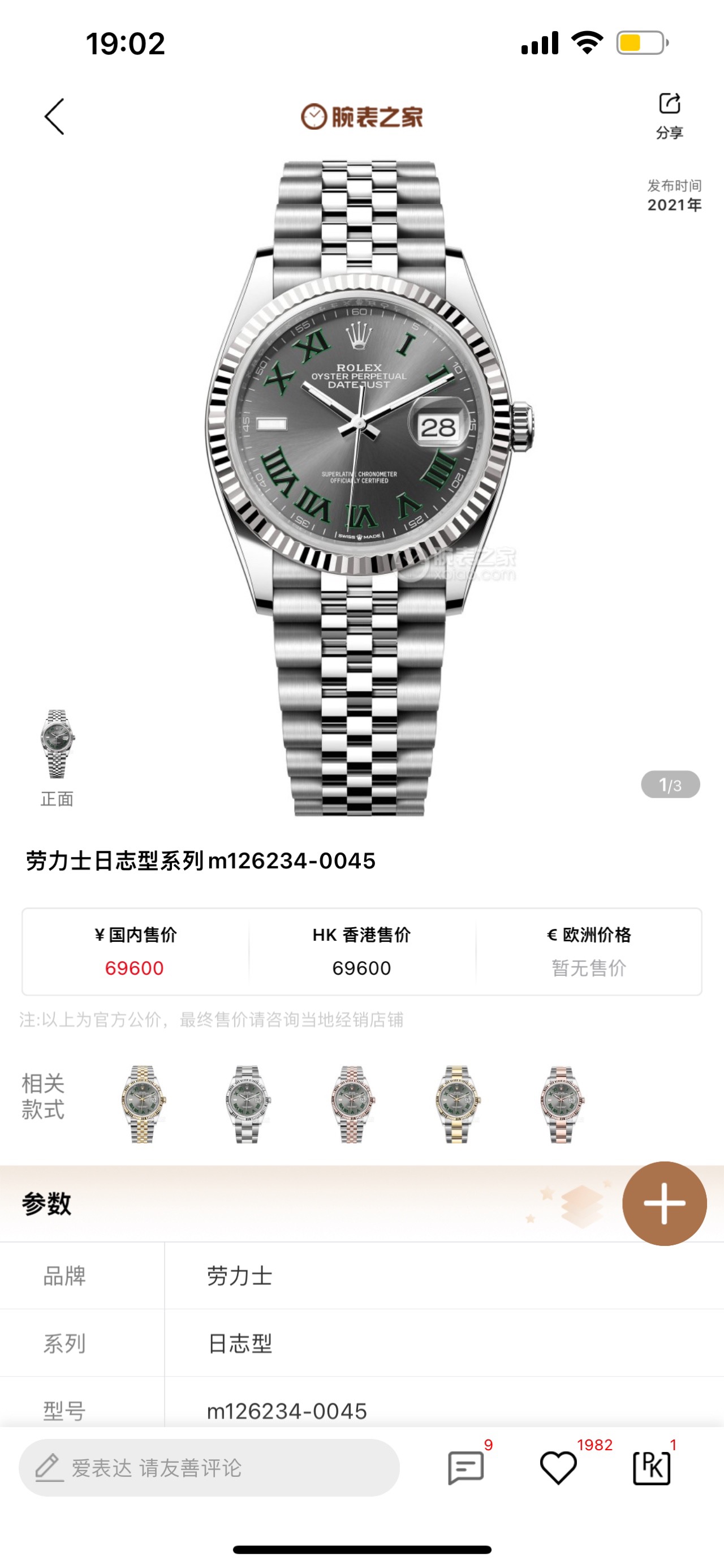 劳力士/Rolex 日志型 36 M126234-0045 绿萝 自动机械机芯 白色黄金钢(蚝式钢与18ct白色黄金的组合) 36毫米 专柜价 69600 全套现货