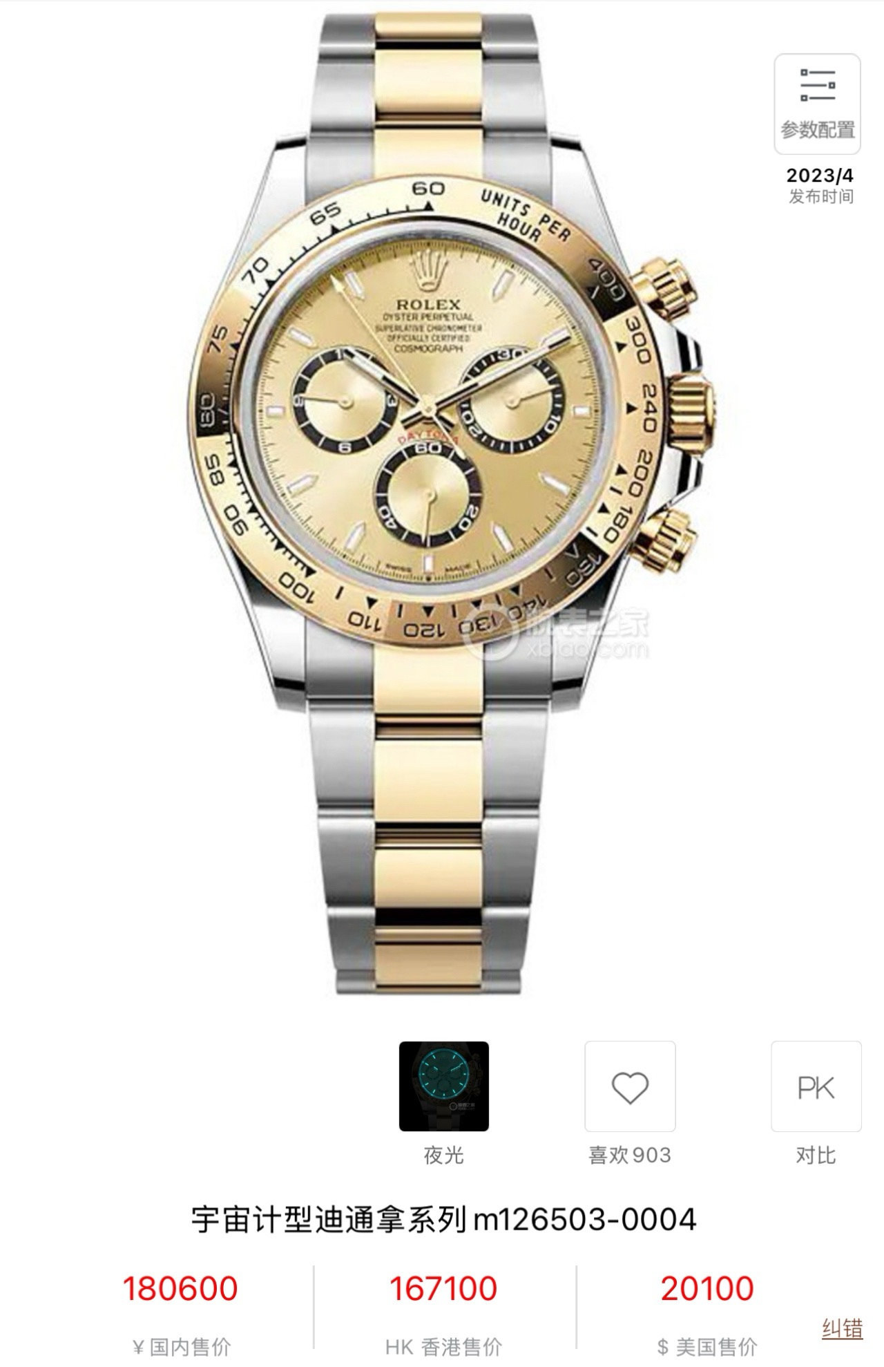 劳力士宇宙计型迪通拿 香槟间金迪 M126503-0004机械男性