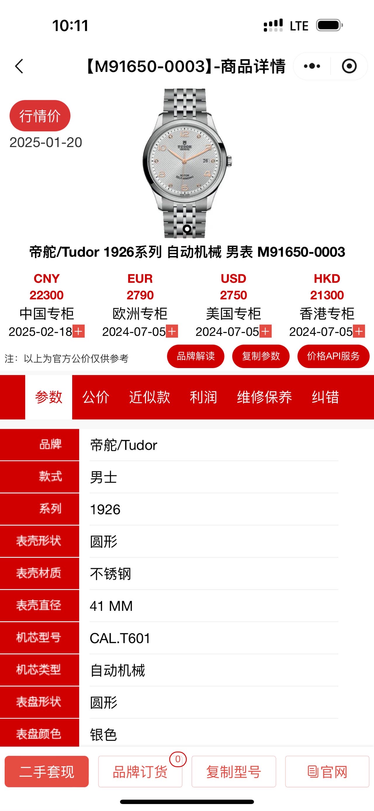 帝舵1926系列,M91650-0003银色盘面,刻度钻石!41mm表径,国行行货全新全套未使用,官方联保五年!专柜售价21300