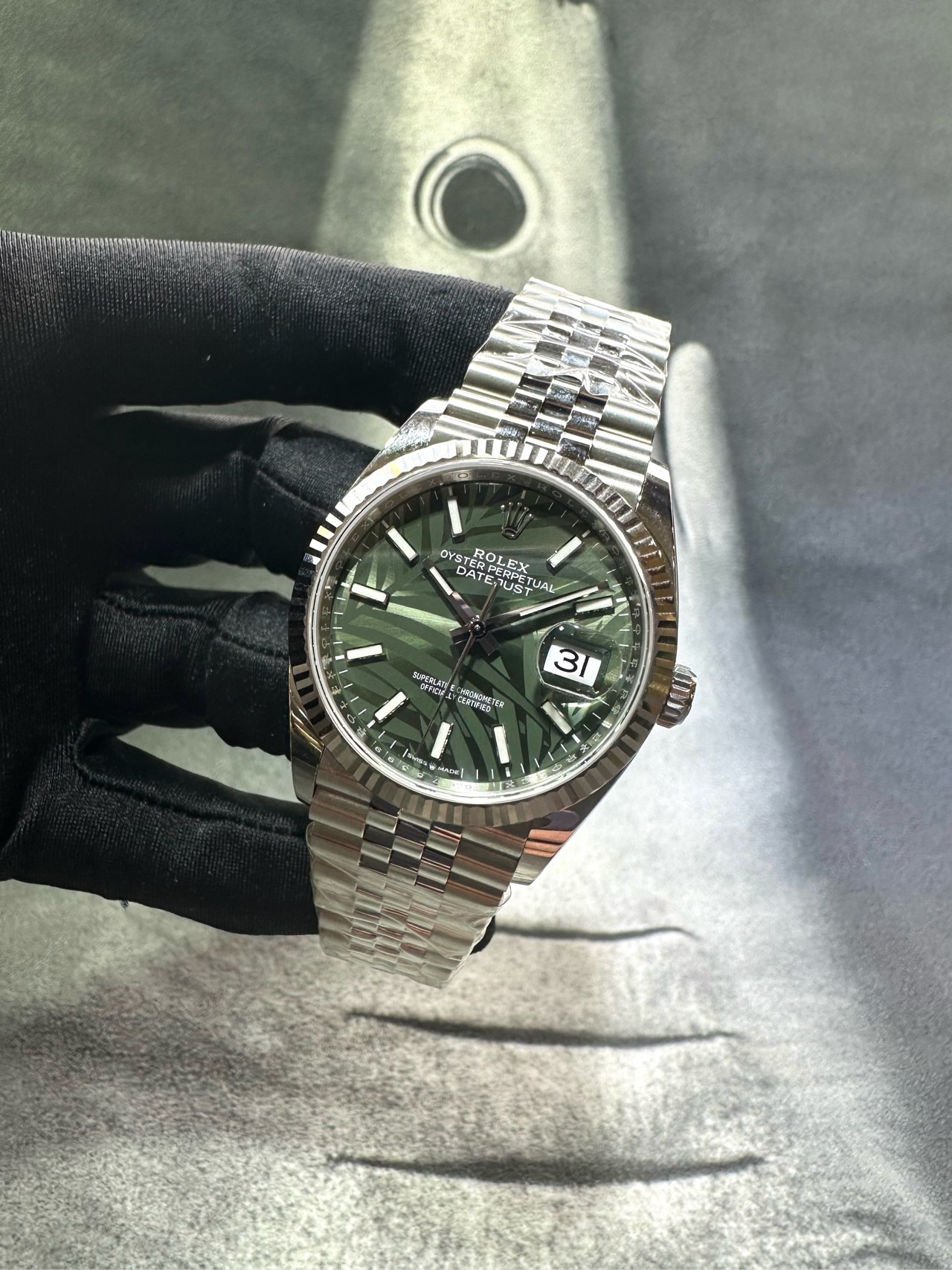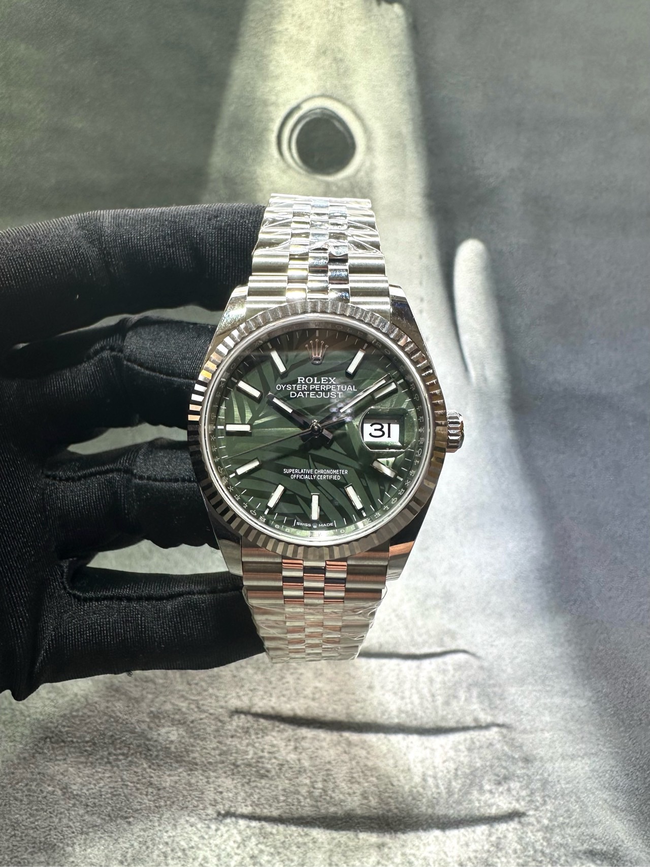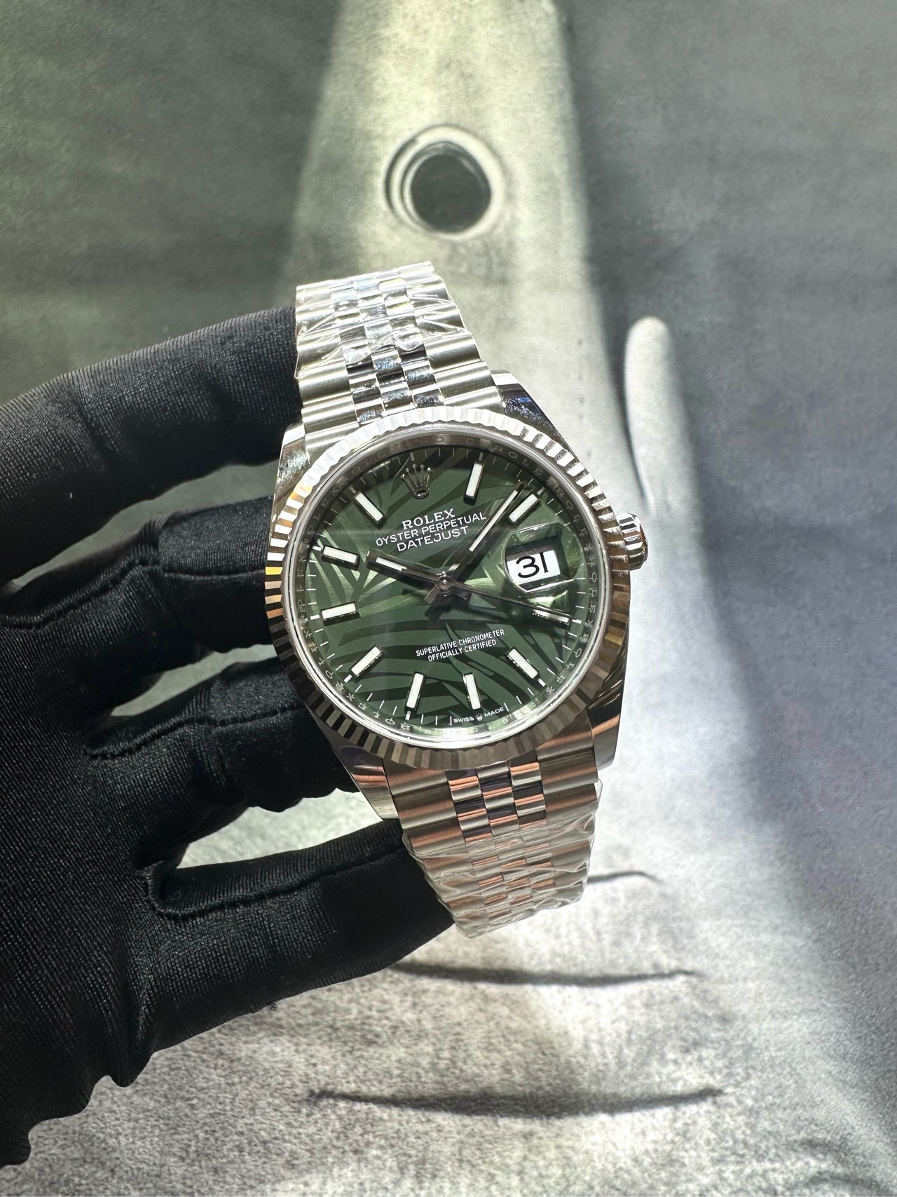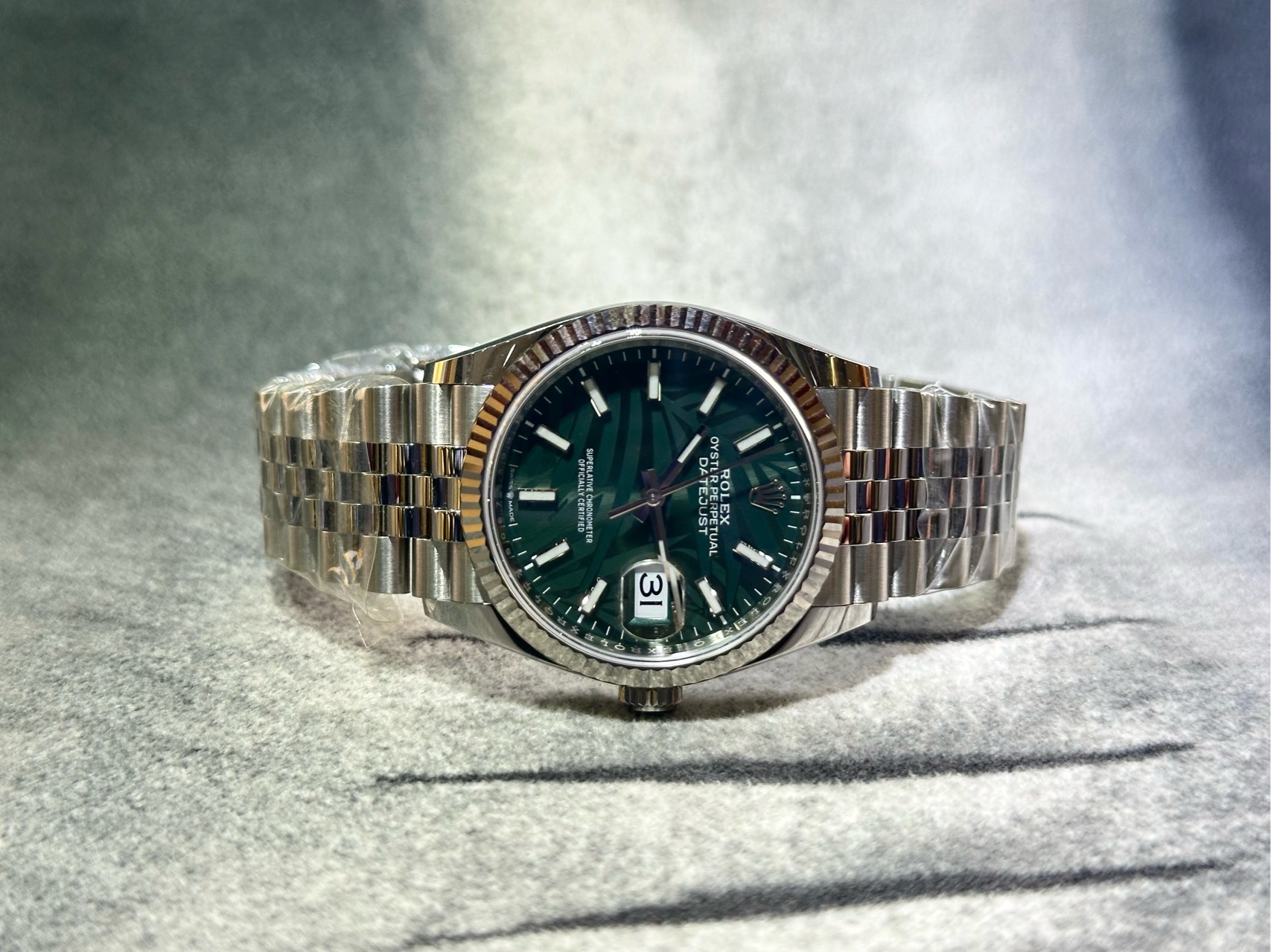 劳力士/Rolex 日志型 m126234-0047 自动机械腕表 蚝式钢材质 表圈白色黄金钢圈 36毫米表径 橄榄绿棕榈叶表盘 未使用全套 专柜价 69600