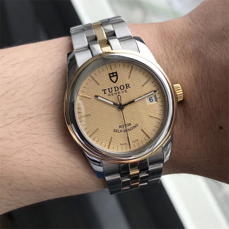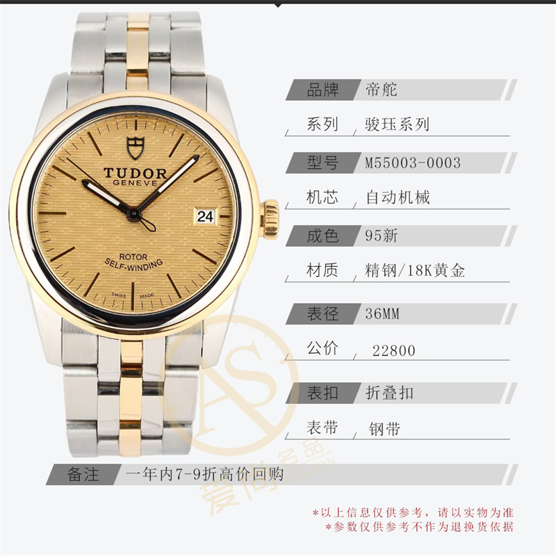 帝舵骏珏系列 型号M55003-0003 36表径自动机械表 精钢/18K黄金材质 公价22800元