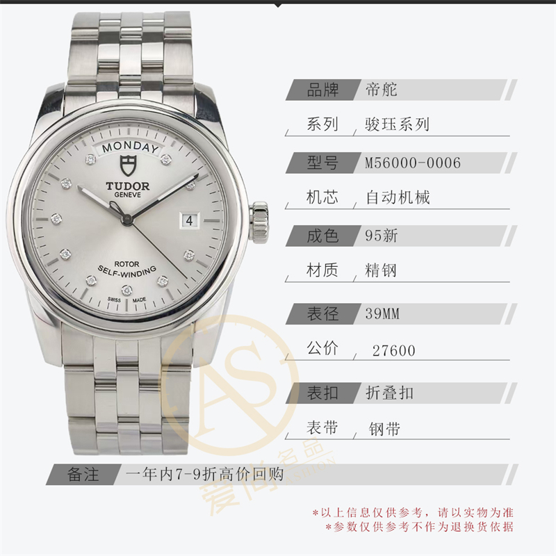 帝舵骏珏系列 型号M56000-0006 39表径自动机械表 公价27600元