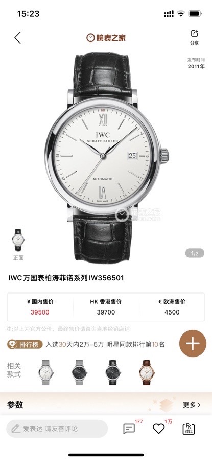 万国 柏涛菲诺系列 IW356501 自动机械 男表 40表径 专柜公价39500 现货二手单表好价