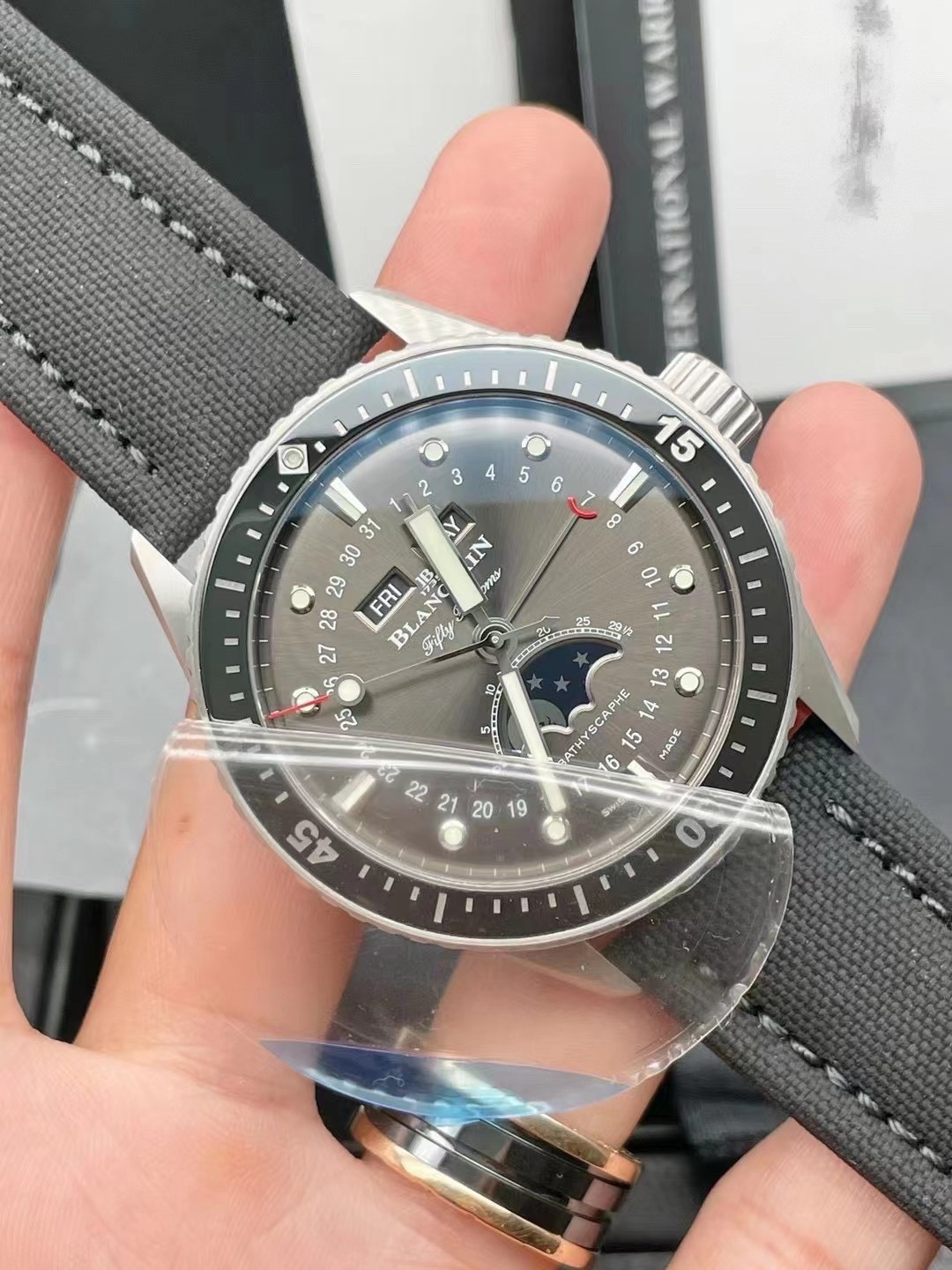 宝珀5054,五十尋 43mm表径,日期/月份/星期/月相功能齐全,6654.P机芯走时精准打磨精良,未使用 全套公价115000