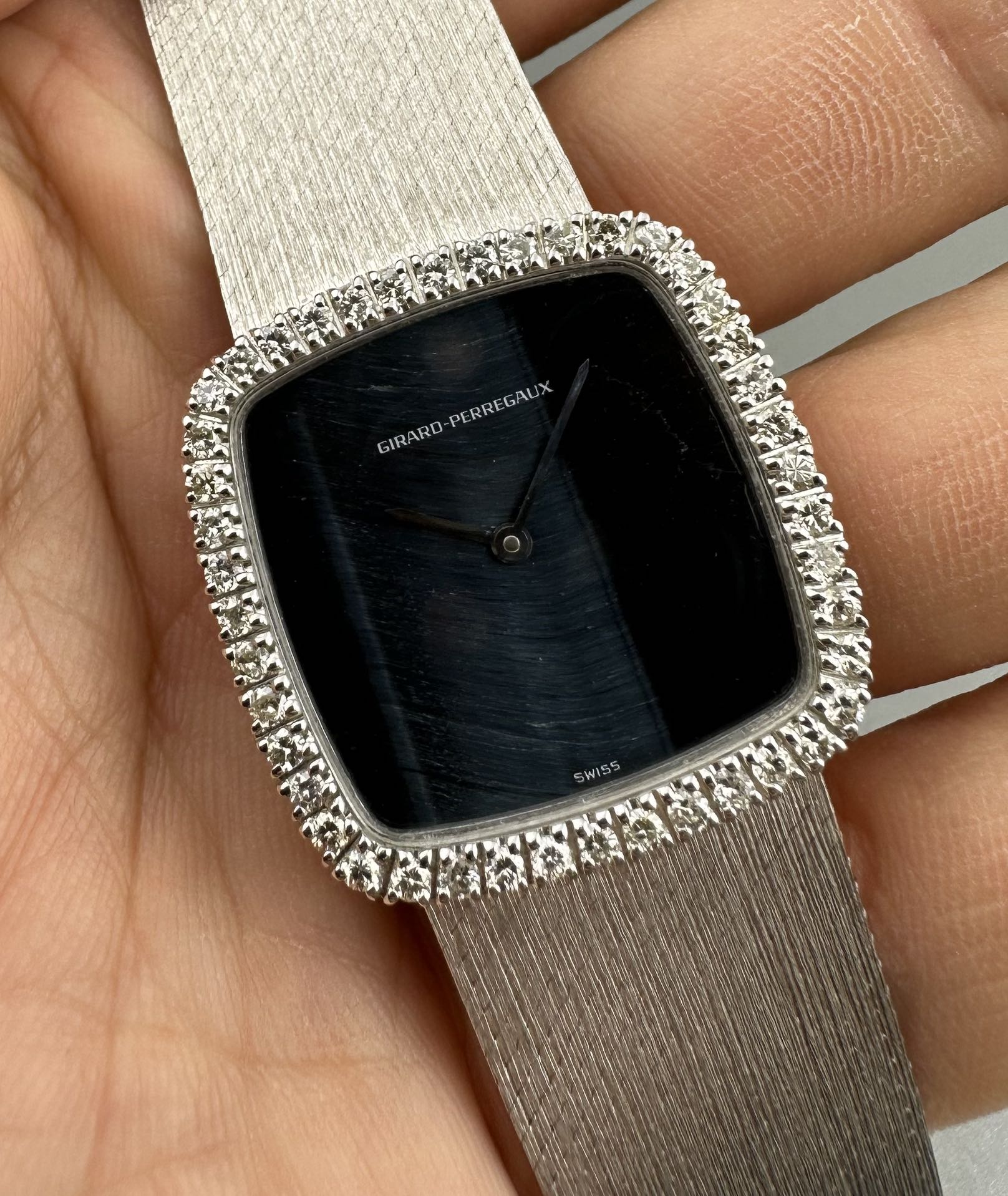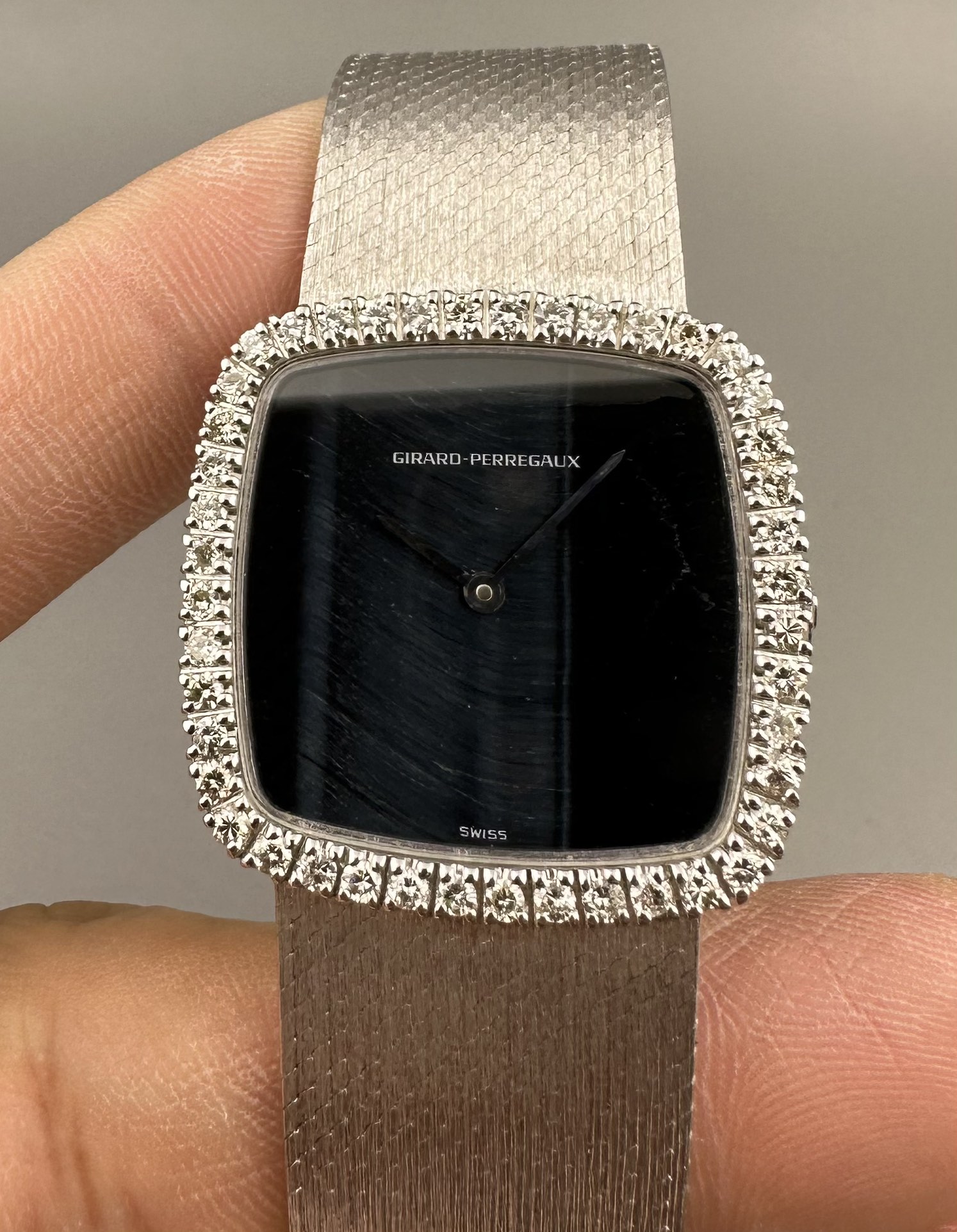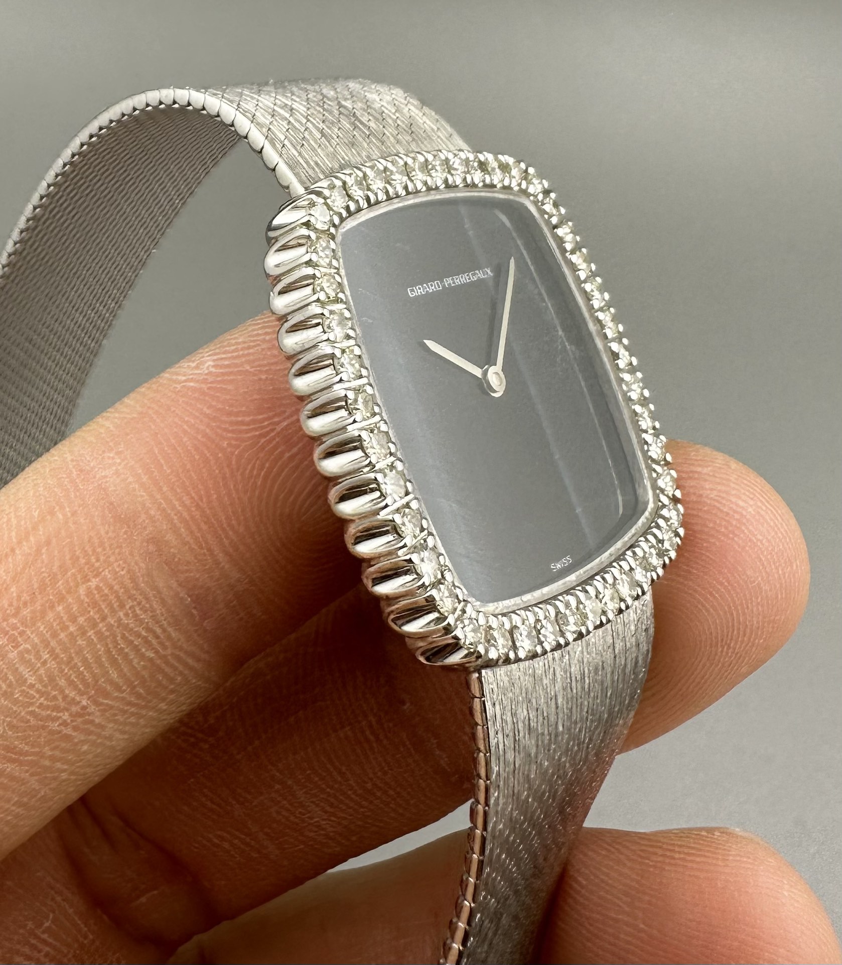 芝柏-女装表,31*31MM表径18K白金表壳和表链,原装镶嵌大颗钻石 ,天然宝石表盘,手动机械机芯,单表无附件,整表重87克,整表原装成色95新,公价20万+元
