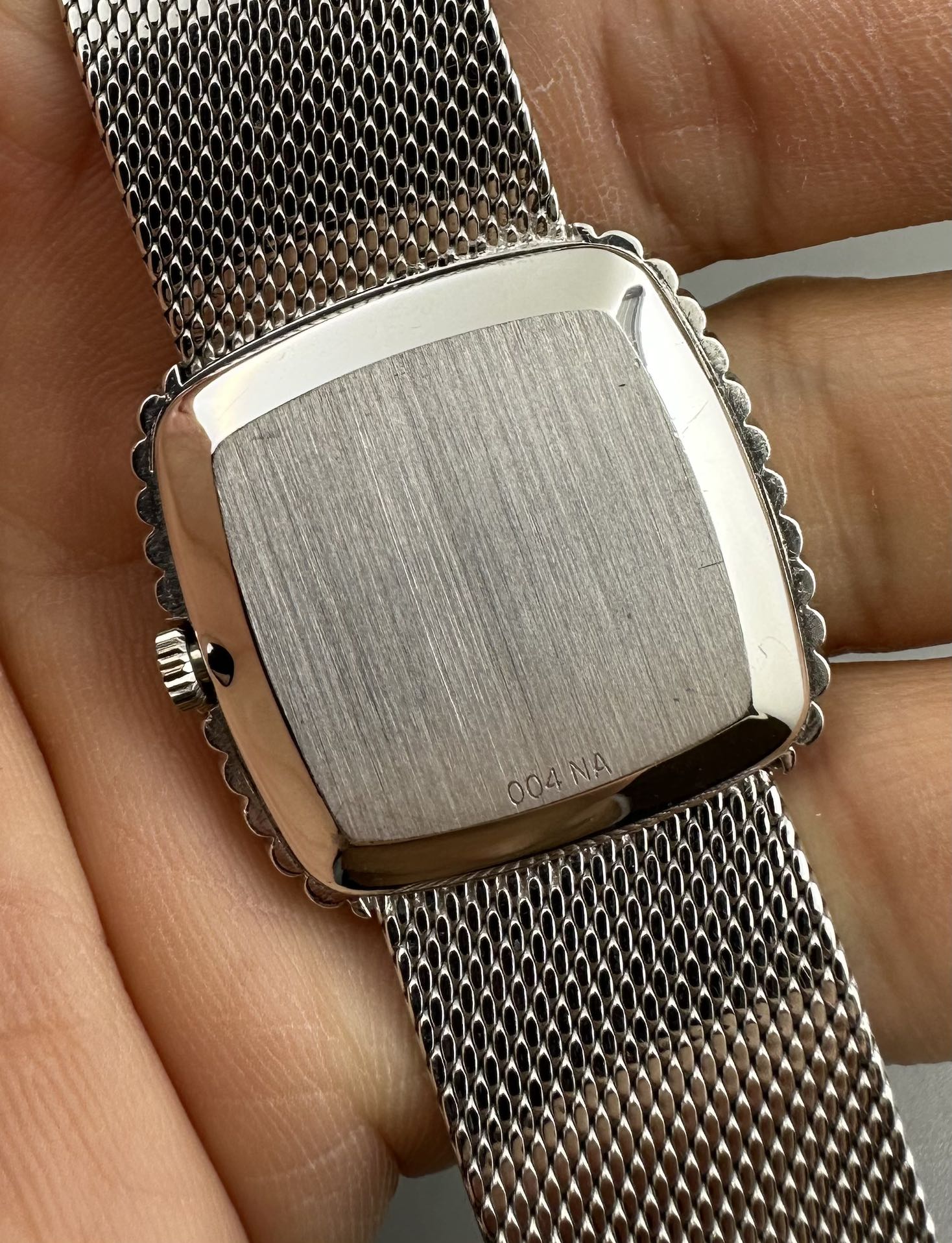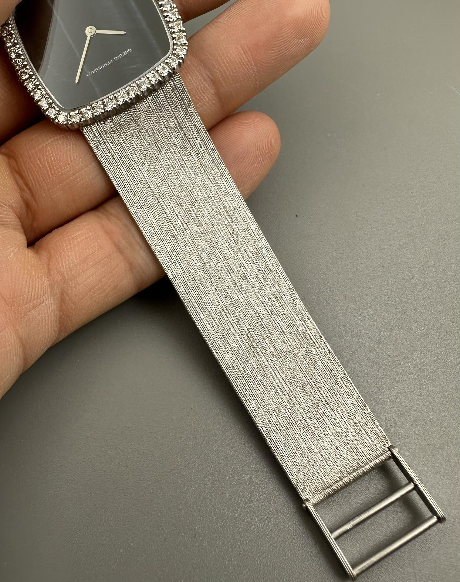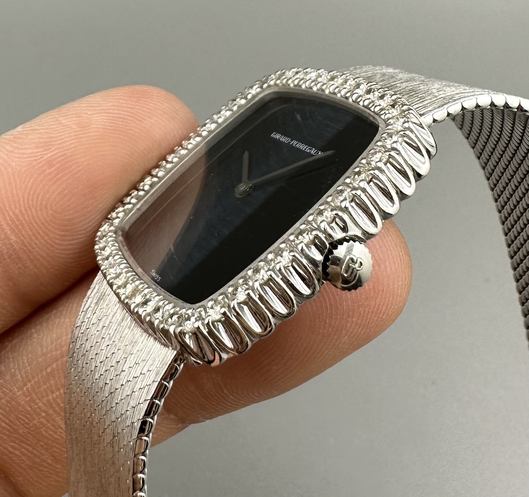 芝柏-女装表,31*31MM表径18K白金表壳和表链,原装镶嵌大颗钻石 ,天然宝石表盘,手动机械机芯,单表无附件,整表重87克,整表原装成色95新,公价20万+元