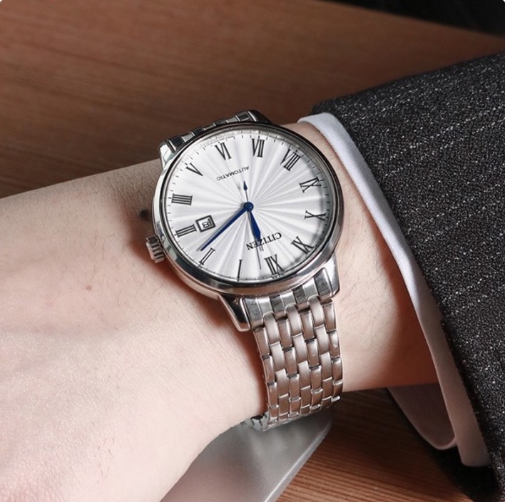 CITIZEN/西铁城 经典机械 简约 防水 42表径,机械机芯 不锈钢表带 日韩表 男表 白色 NJ0080-50A 专柜售价2900 全新全套未使用近期保卡
