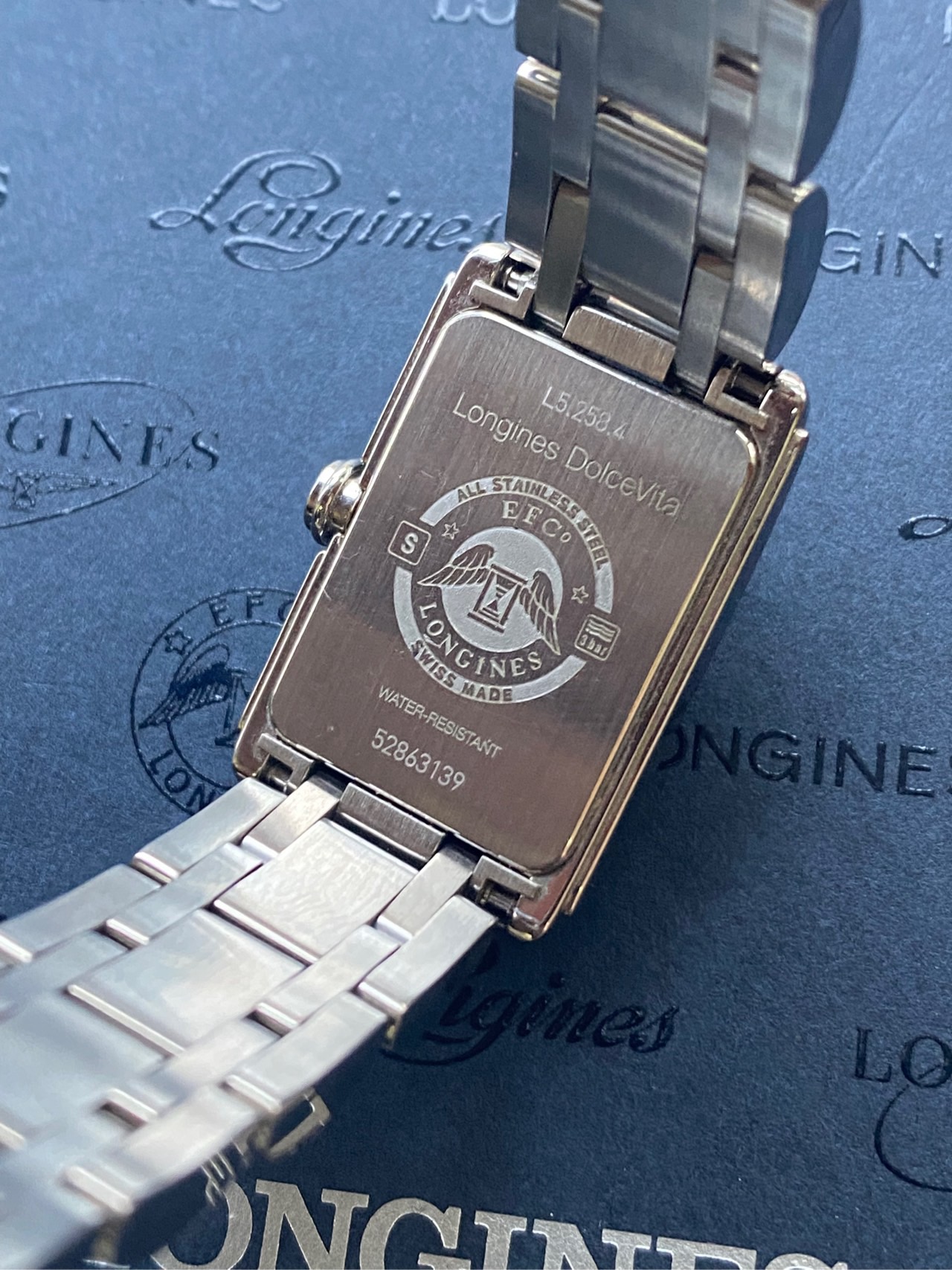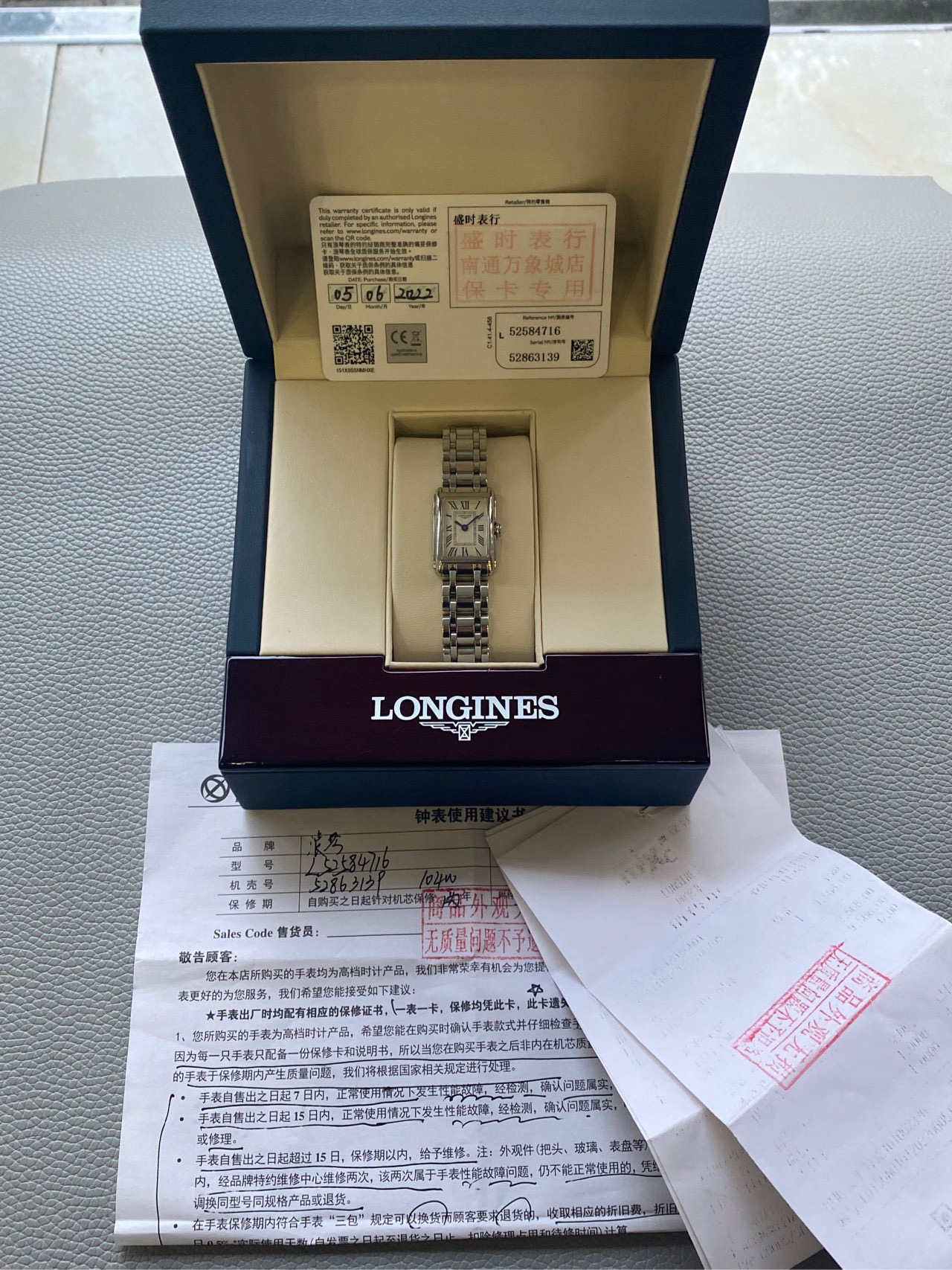 浪琴L5.258.4.71.6黛绰维纳系列女士石英腕表 罗马数字刻度蓝钢指针 表径17×27mm 热卖款 2022年6月盛时表行购入全套