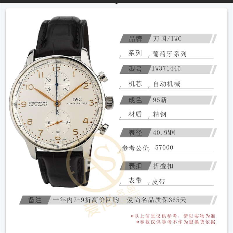 万国葡萄牙系列 型号IW371445 40.9表径自动机械表 公价57000元