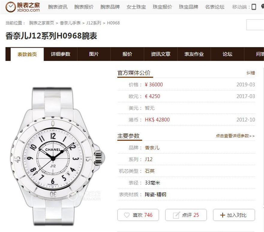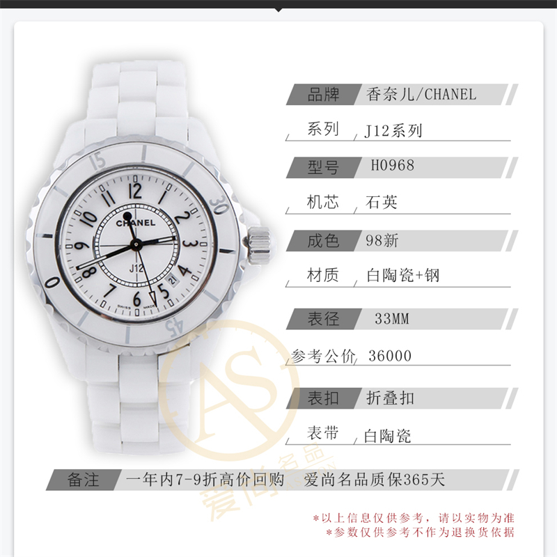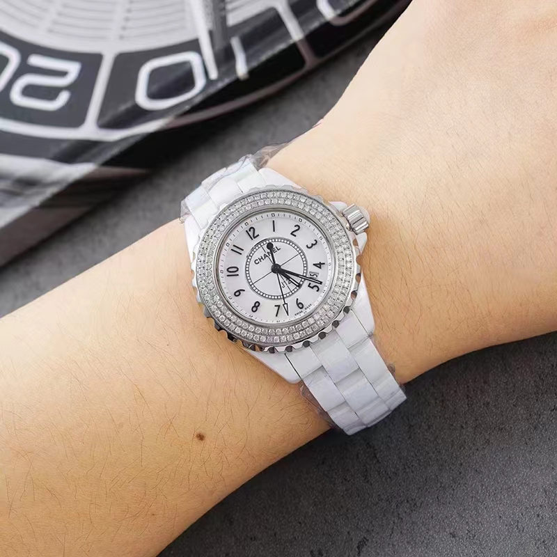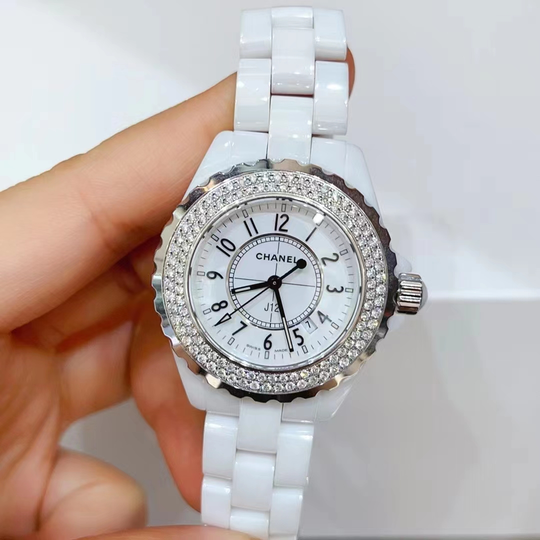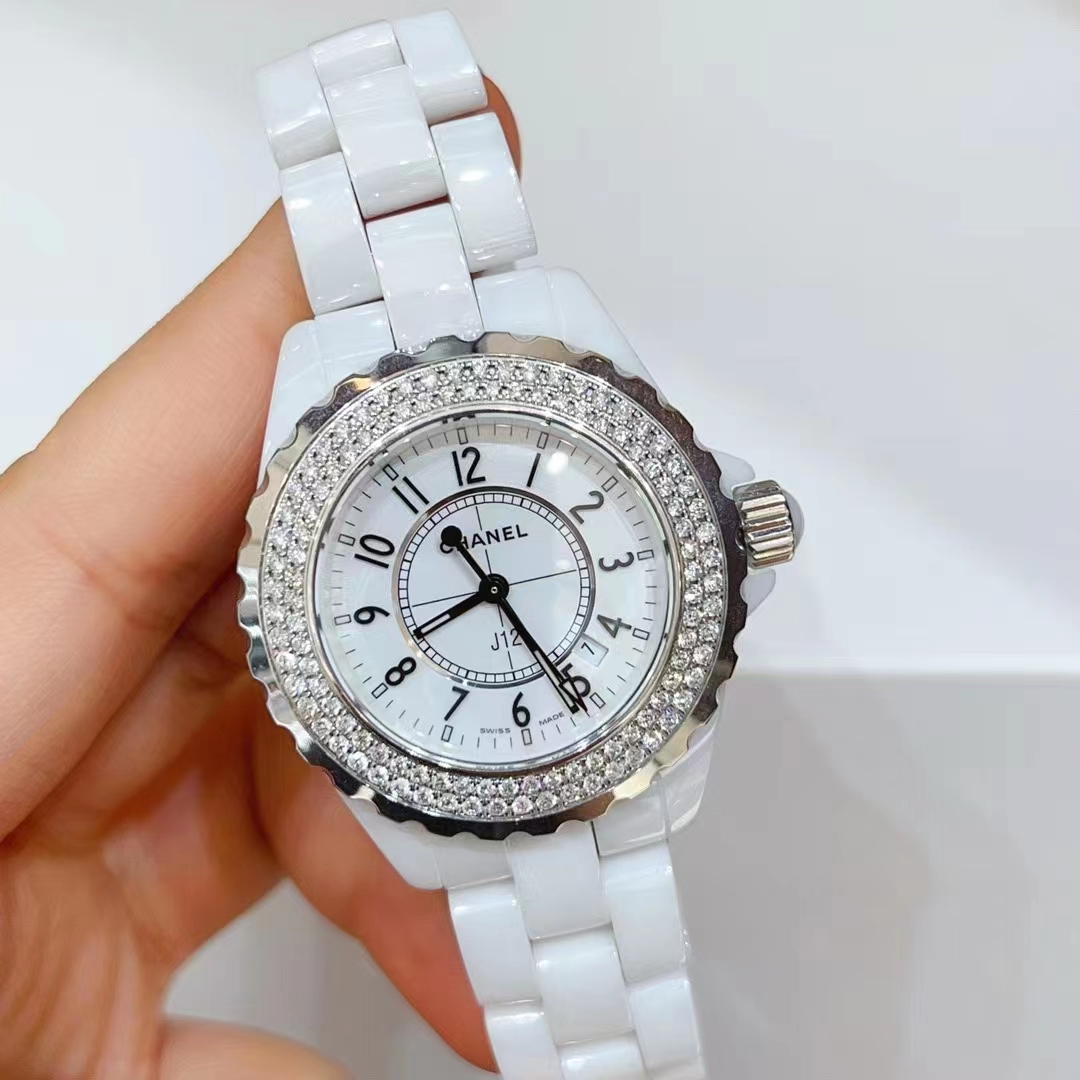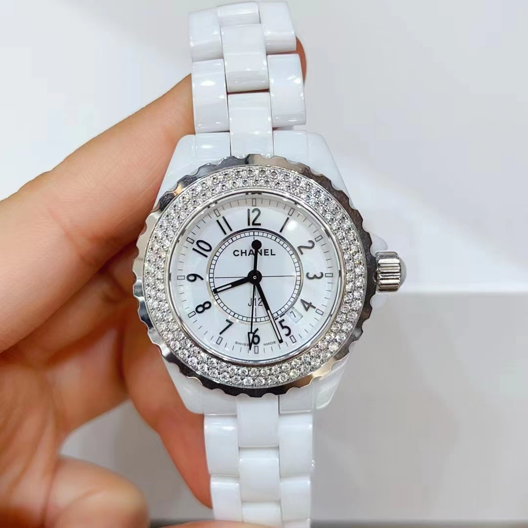 香奈儿/CHANEL J12系列 型号H0968后镶钻 白陶瓷+钢材质 33表径石英表 公价36000元