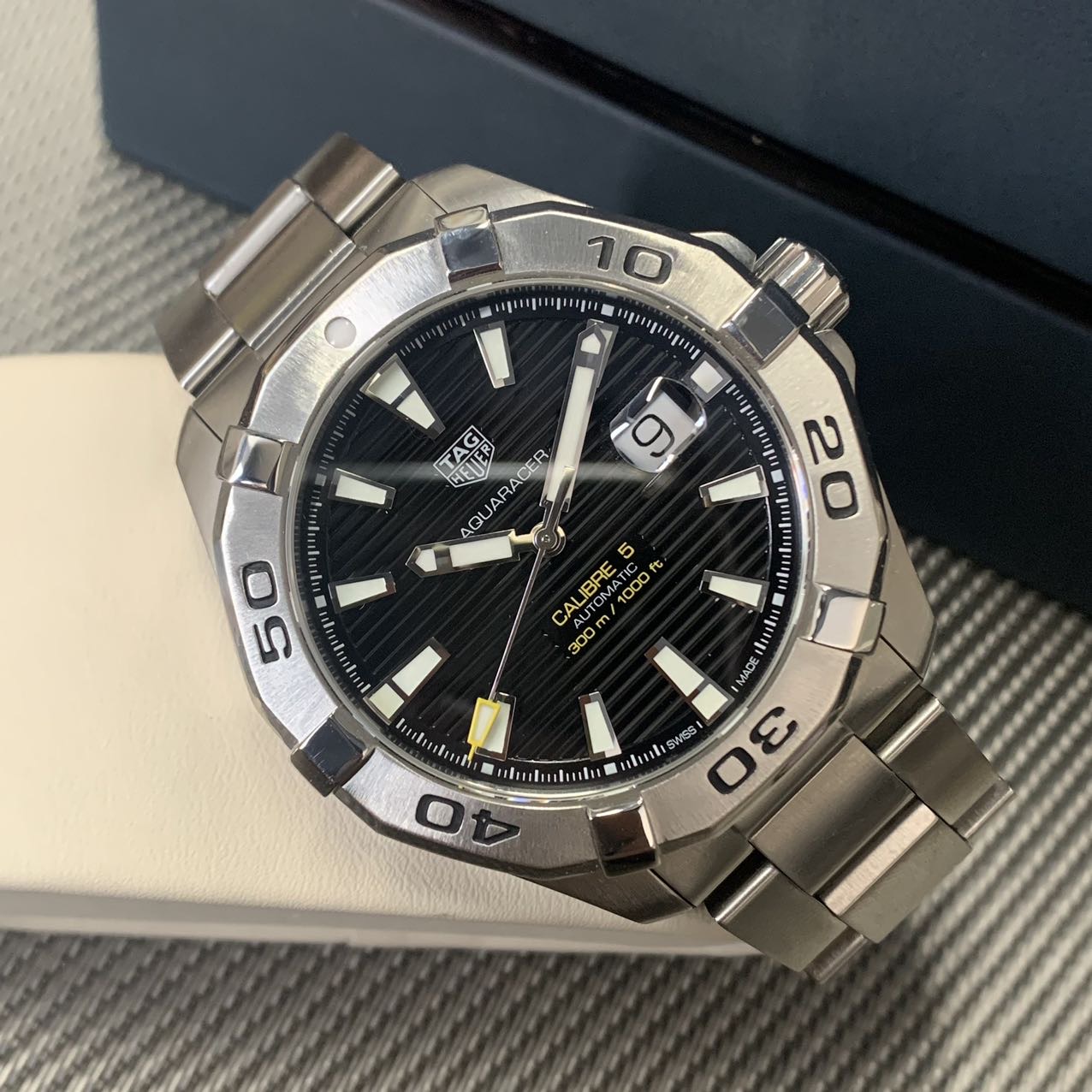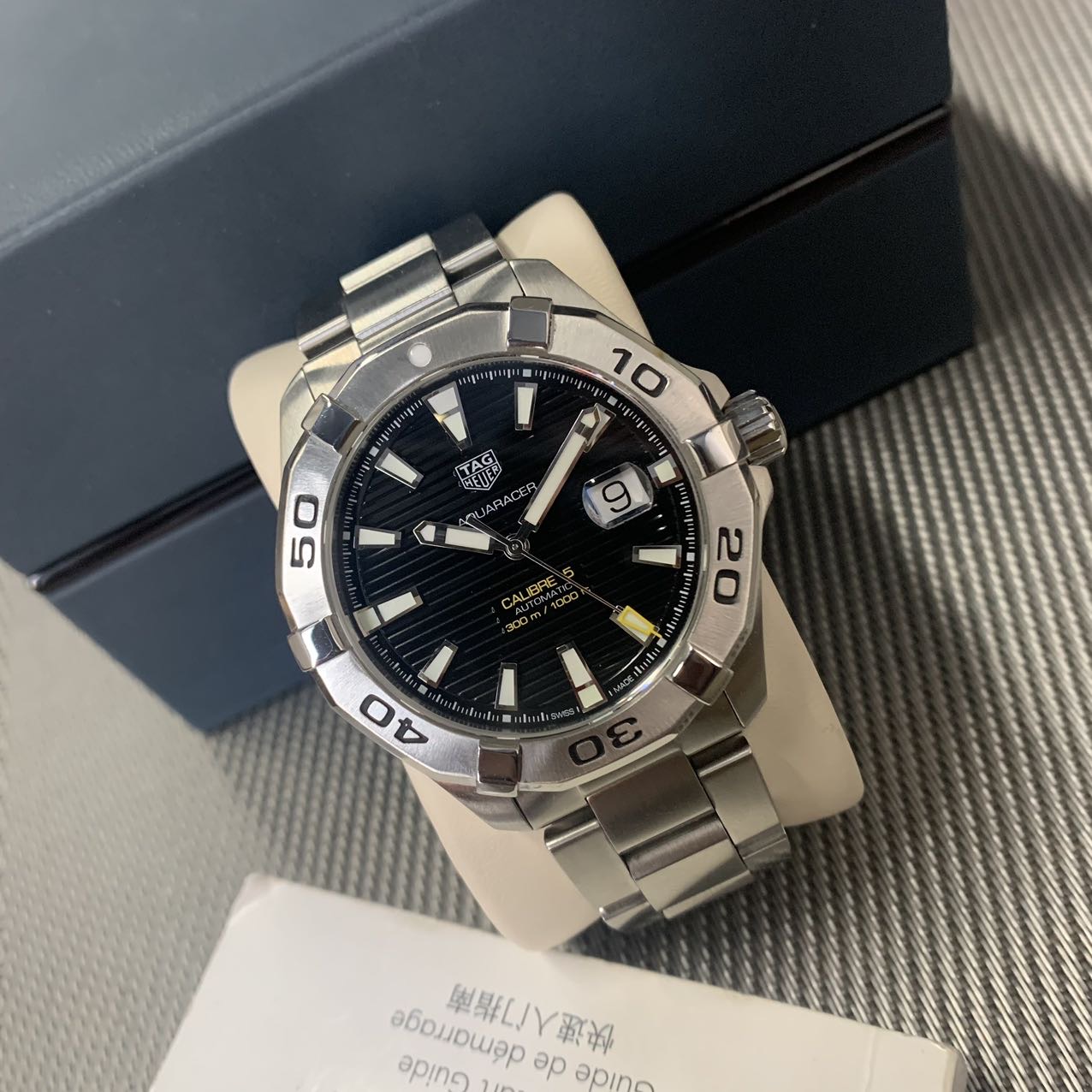 泰格豪雅竞潜300系列机械男表,公价1.82万,表径43mm,全套附件齐全,极品成色98,海平线风格设计表盘,手工镶嵌高亮泽光指针刻度,单向旋转精钢拉丝表圈 300m防水深度,上手动感 扎实。