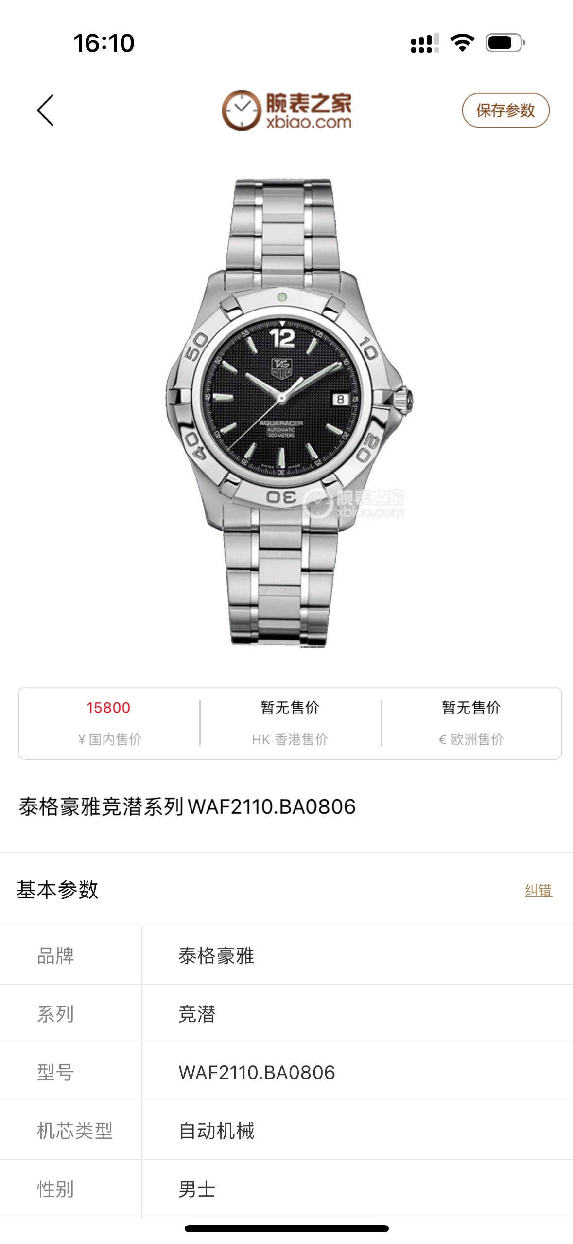 泰格豪雅竞潜AQUARACERWAF2110.BA0806机械男性