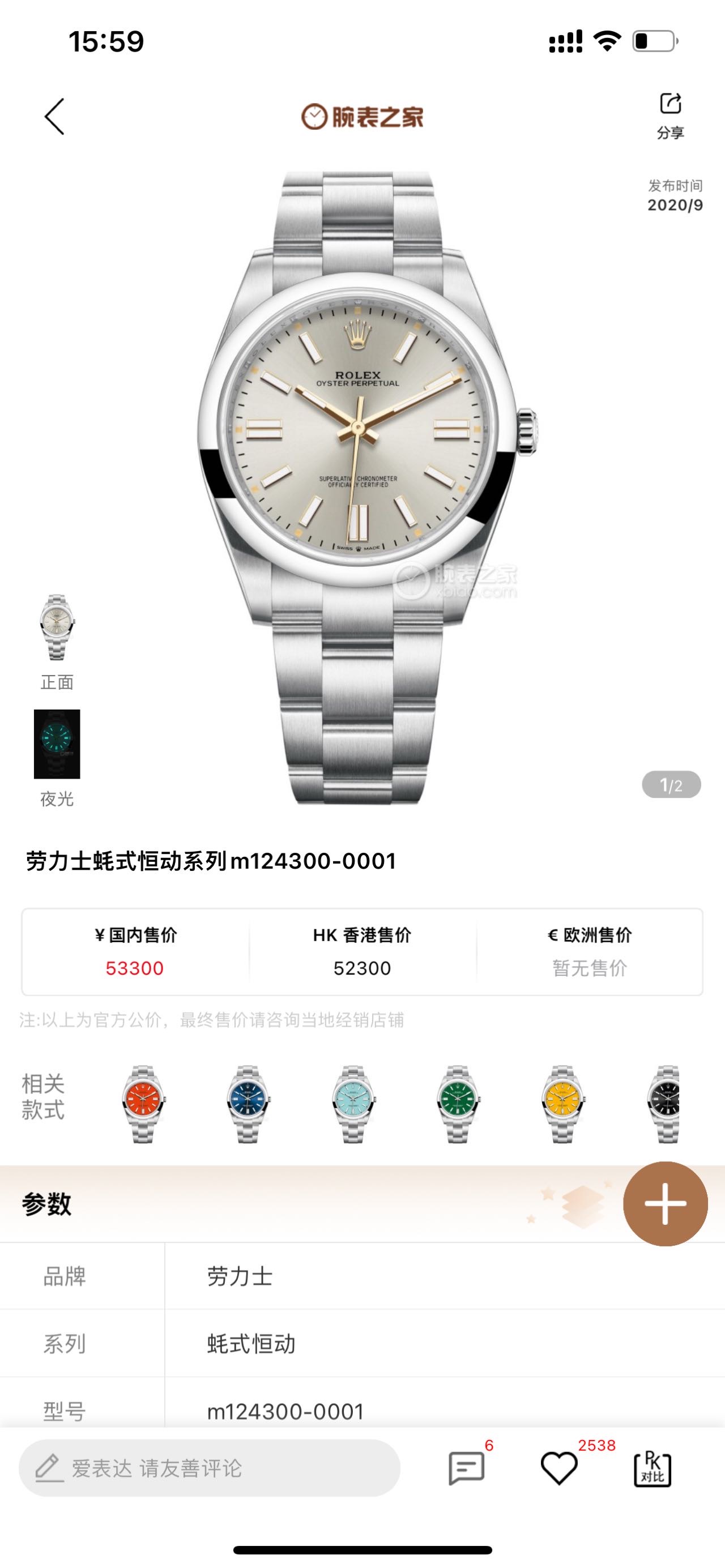 劳力士蚝式恒动系列m124300-0001腕表,自动机械,41毫米,男士,公价53300元,2021年全套95新