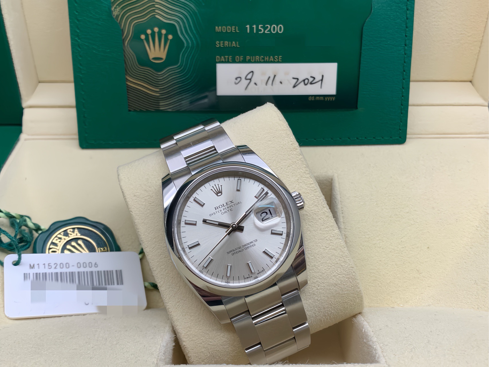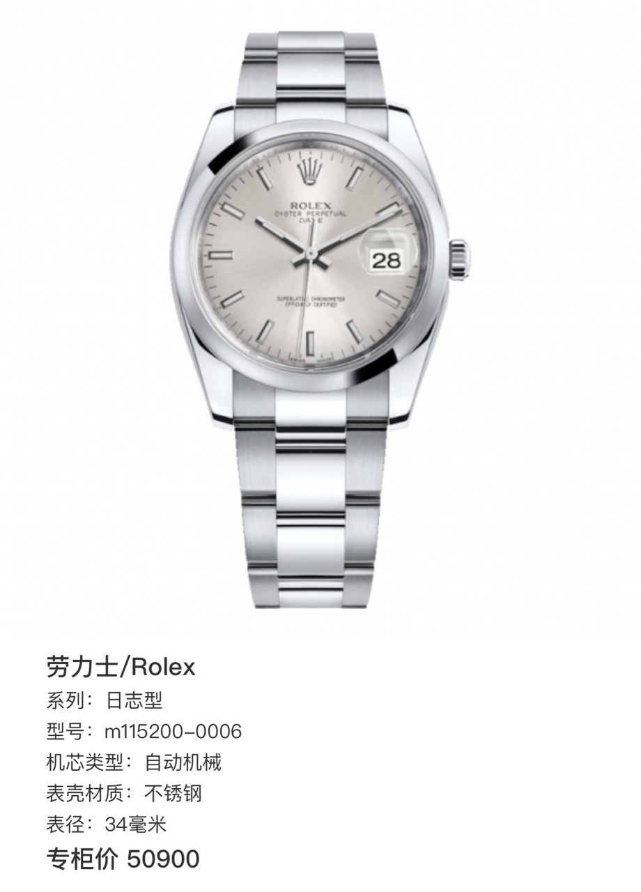劳力士/Rolex 日志型 m115200-0006 自动机械 不锈钢 34毫米 专柜价 50900 21年全套 现货好价!