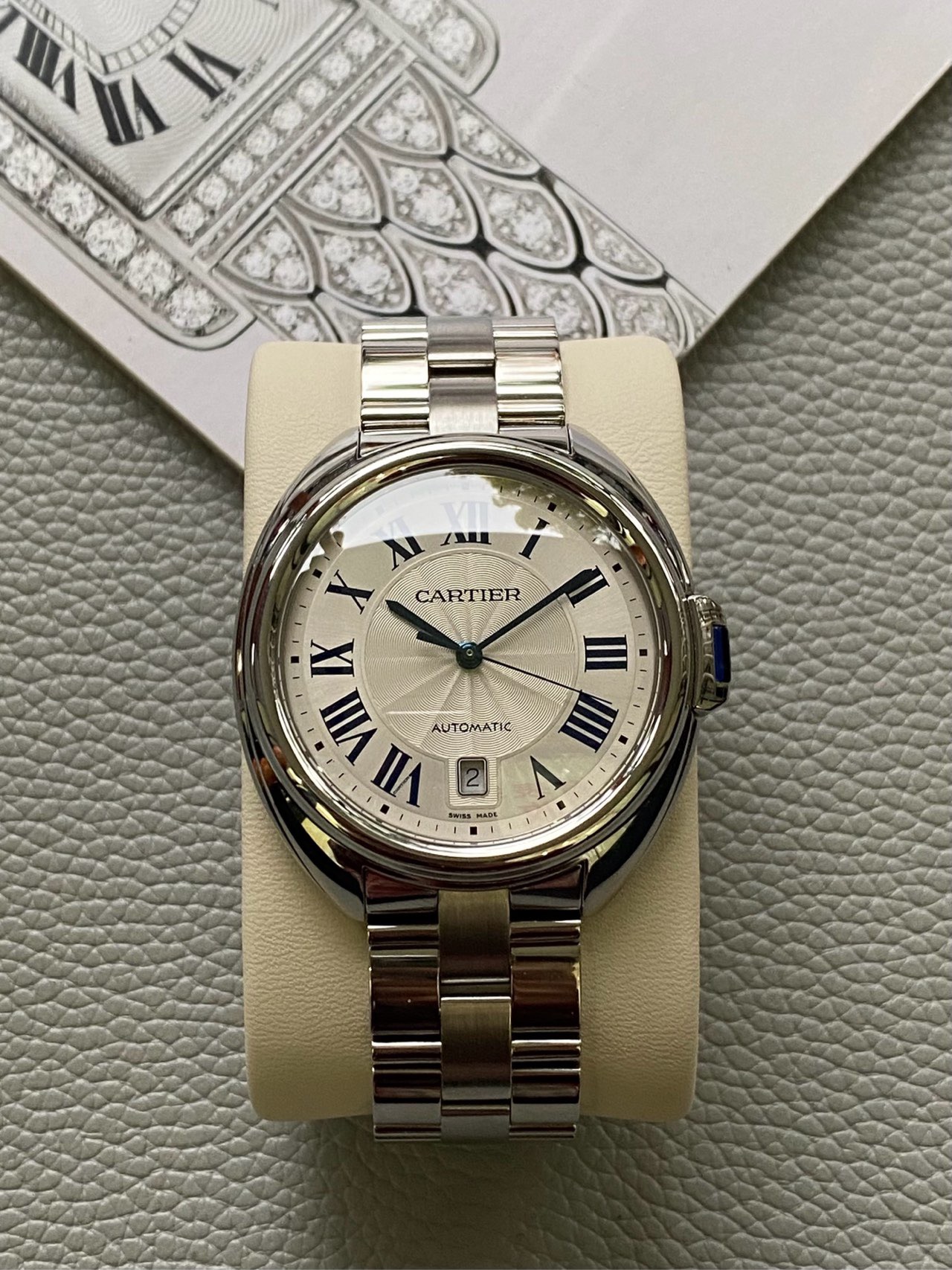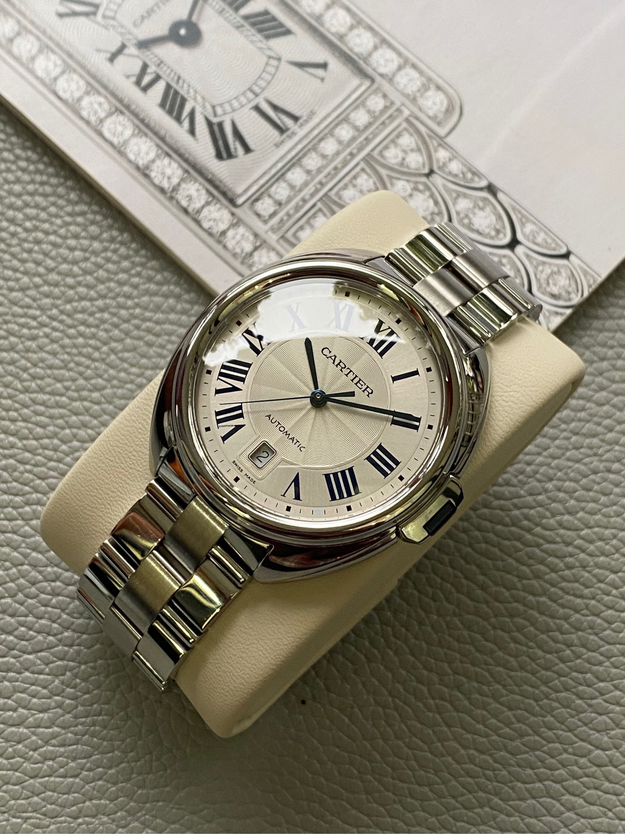 卡地亚WSCL0007钥匙系列男士机械腕表,蓝钢指针、罗马数字刻度,表径40mm