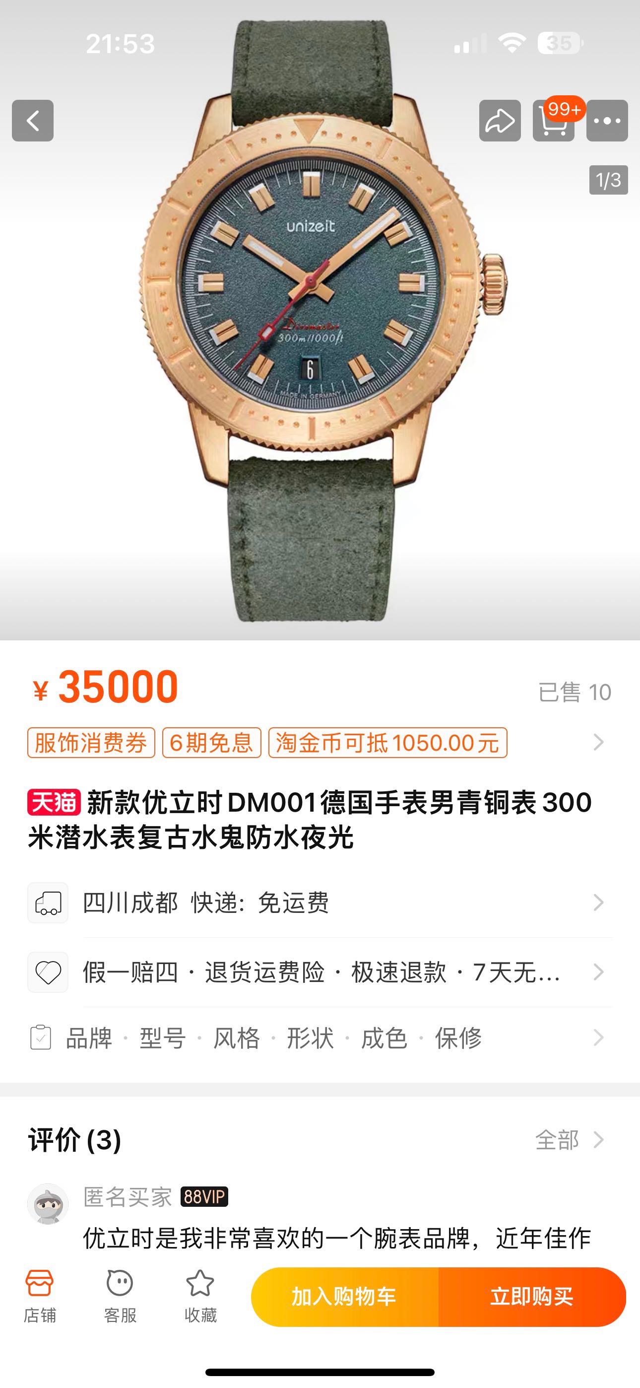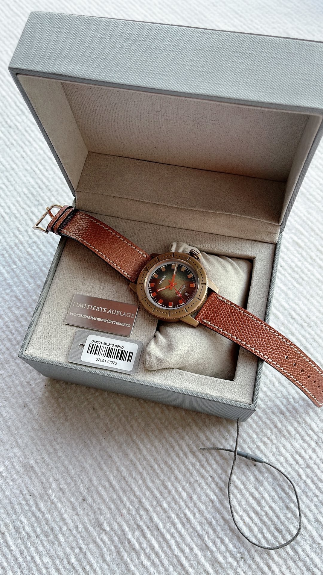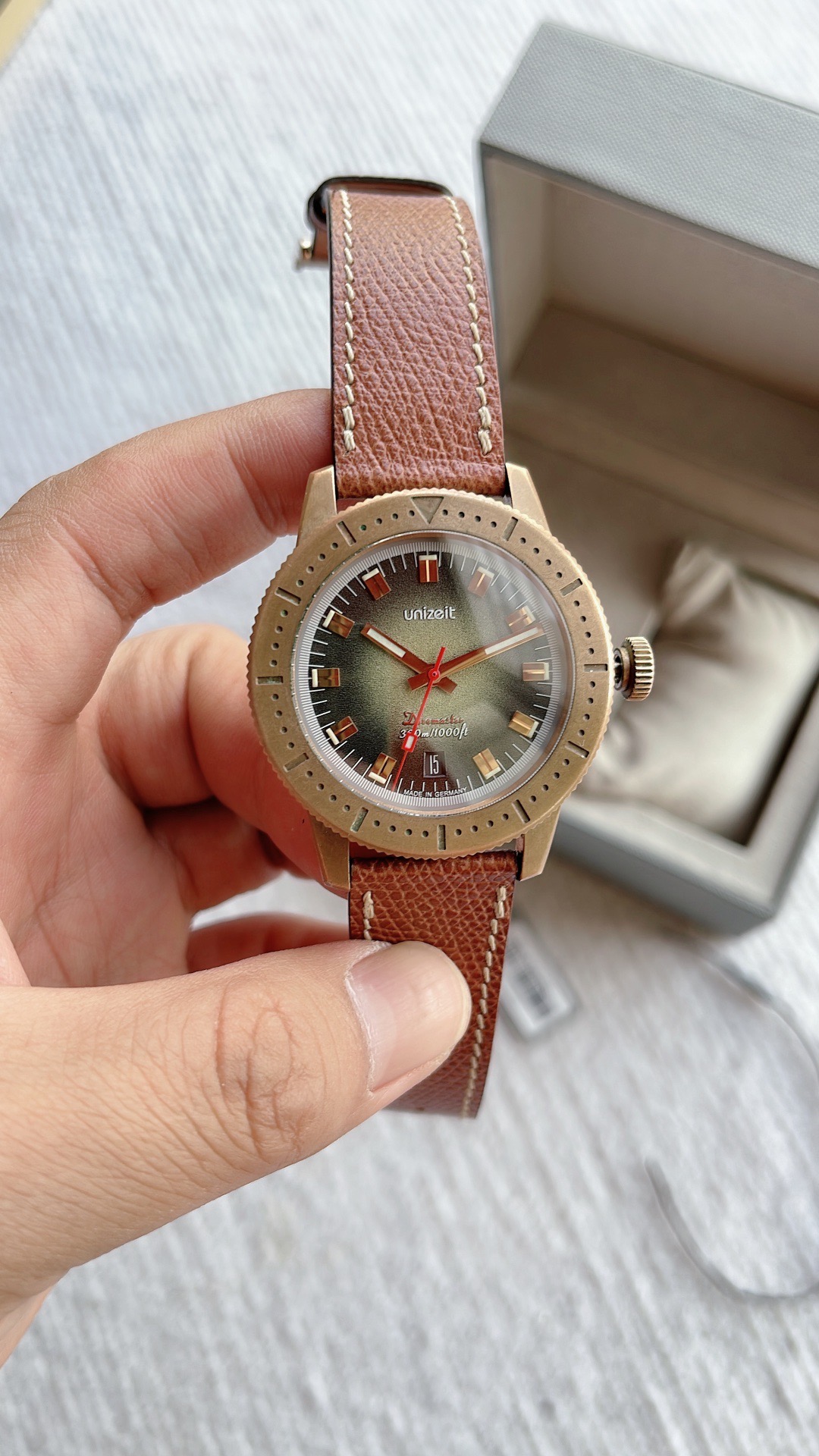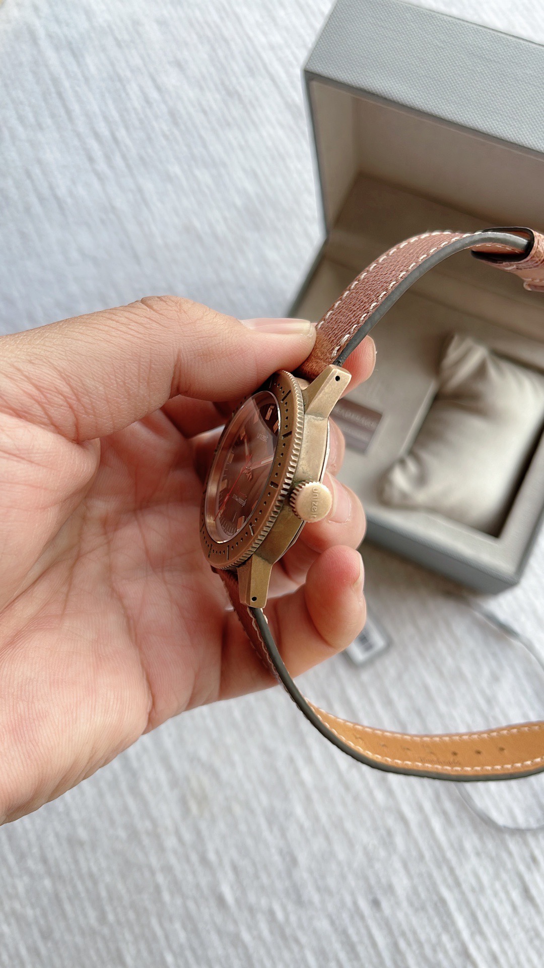 德国独立制表品牌优立时DM001青铜器,42mm表径,搭载SOPROD A10机芯,复古渐变面,青铜表壳钛合金底壳,300m防水,原价35000,95新极品佩戴舒适,上手非常有味道的一款!