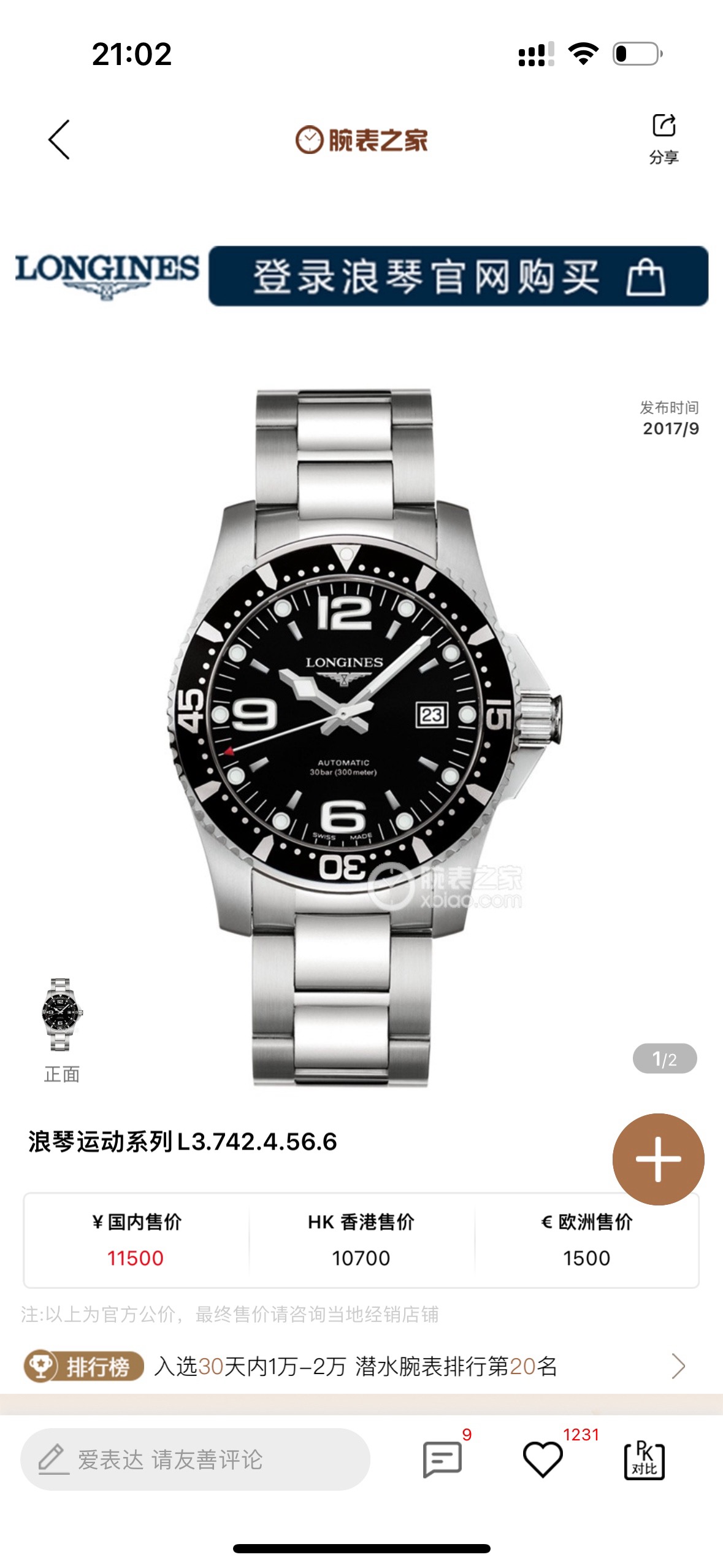 浪琴 康卡斯 运动系列L3.742.4.56.6 男士机械腕表,300米防水,41毫米表盘,热门款保值郭富城代言同款 2023年购入 新款L888机芯专柜11500元,现货好价!