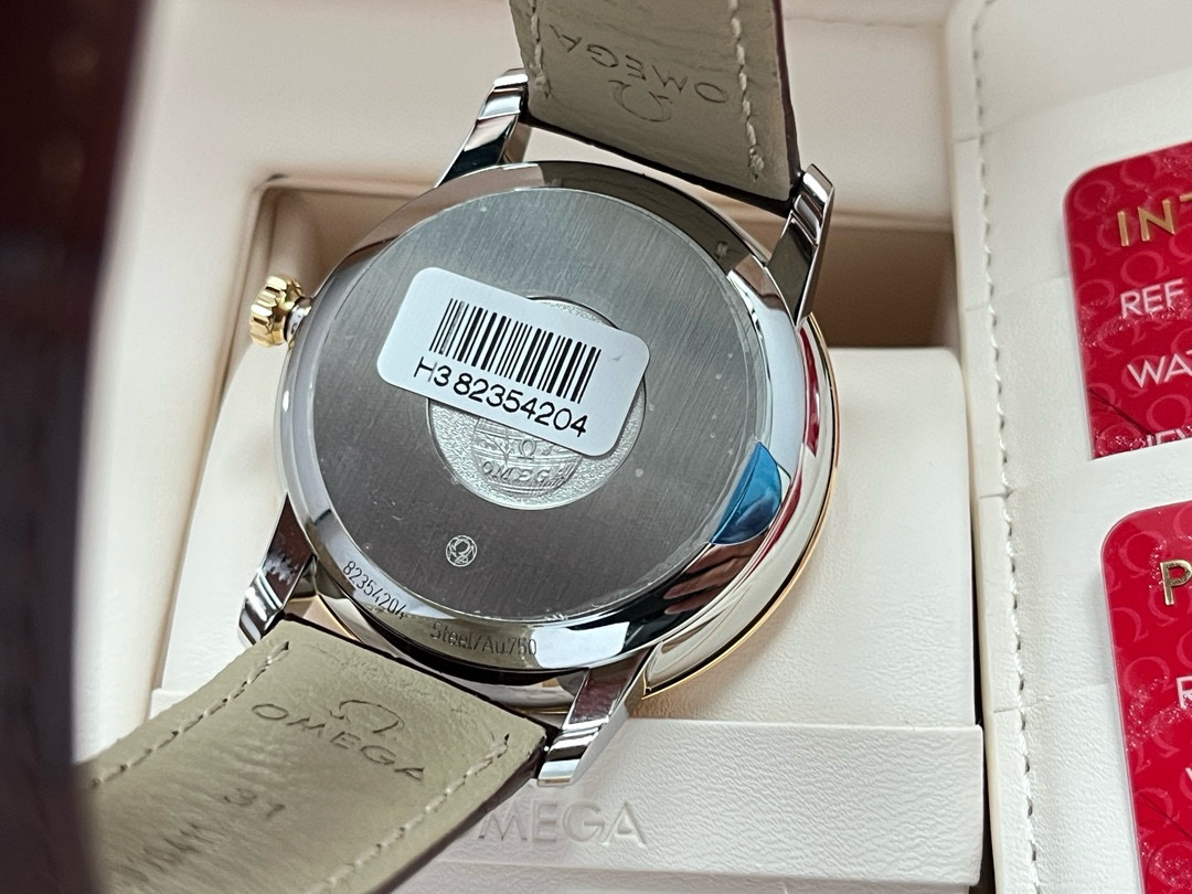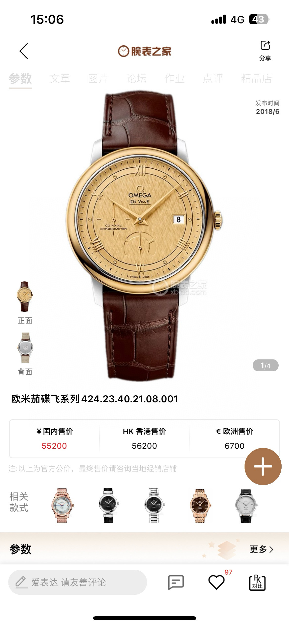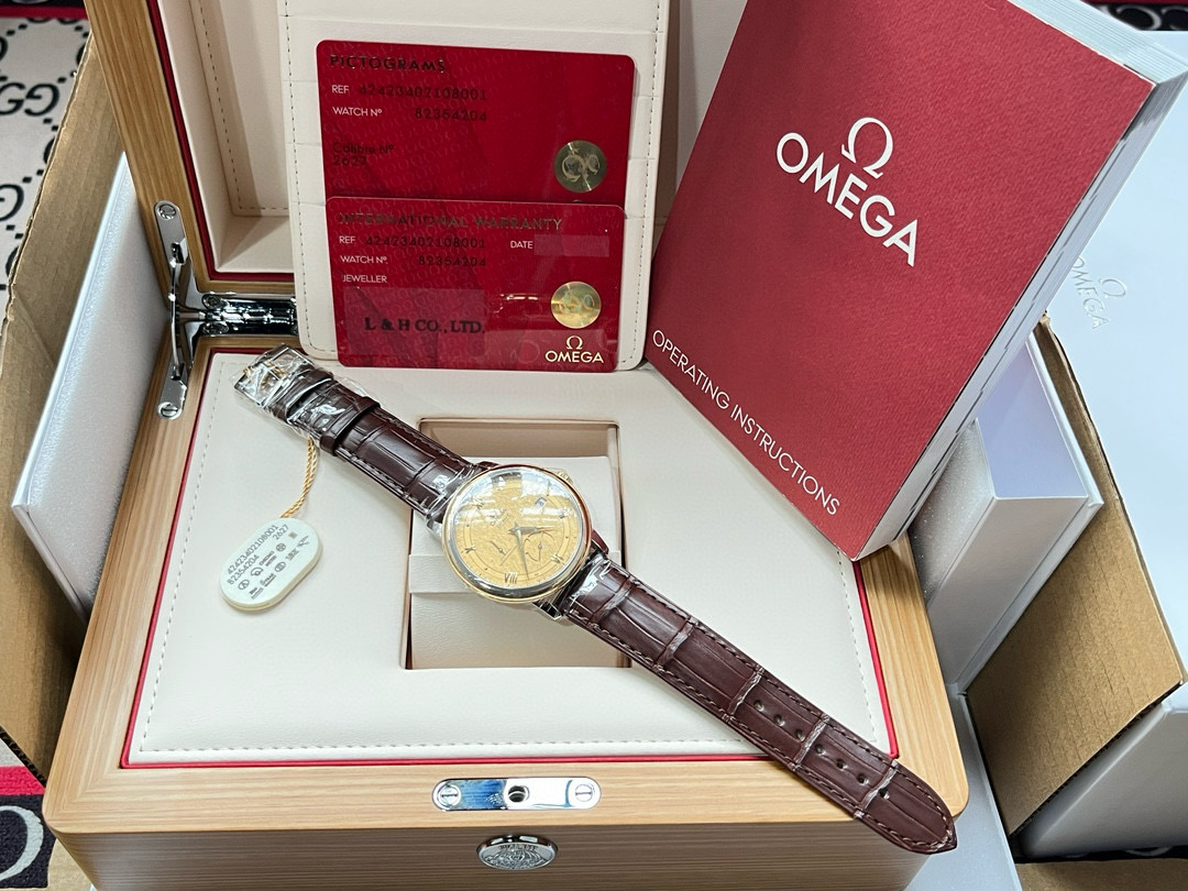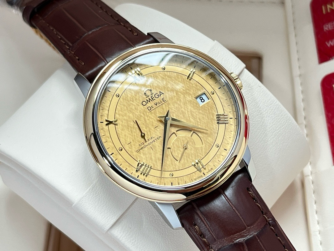 欧米茄 碟飞 新款轨道黄金面 动显 18k玫瑰金圈 Cal.2627同轴机芯 。现全新全套、空白保卡。 表径39.5mm 热门休闲百搭款 工价55200,现未使用品好价