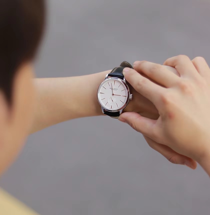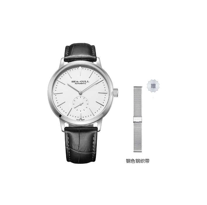 海鸥Sea-Gull 国民系列简约三针设计小秒盘 40表径 自动机械机芯真皮表带国表男表白色表盘819.12.6075 专柜售价2200 全新全套全国联保近期保卡