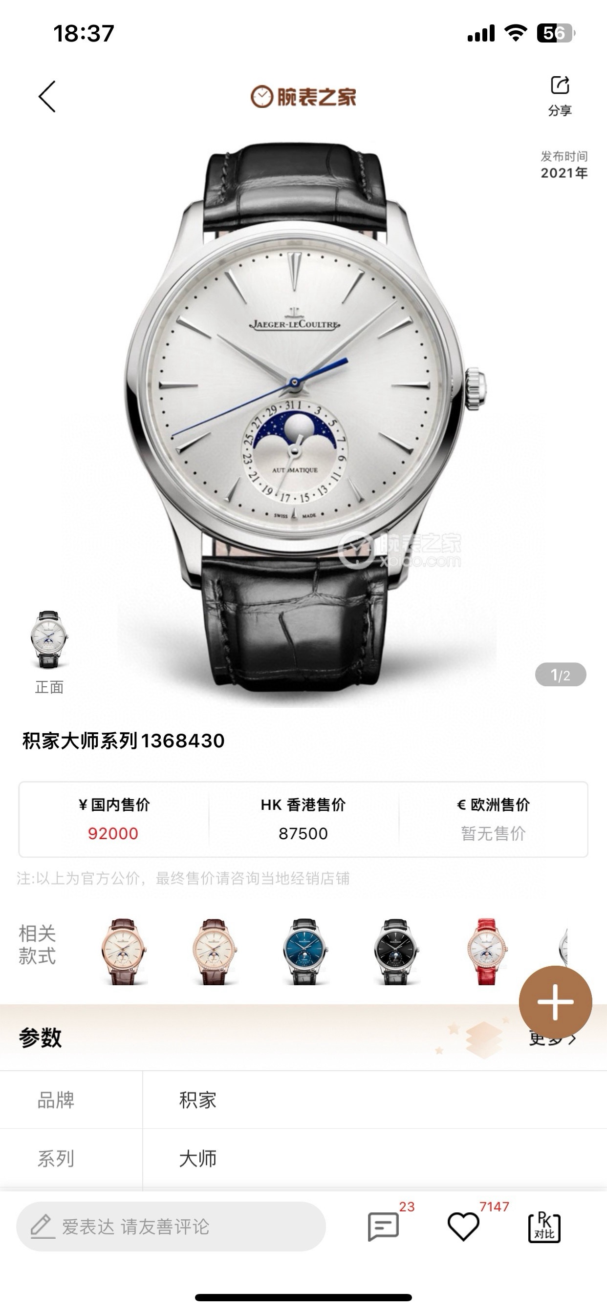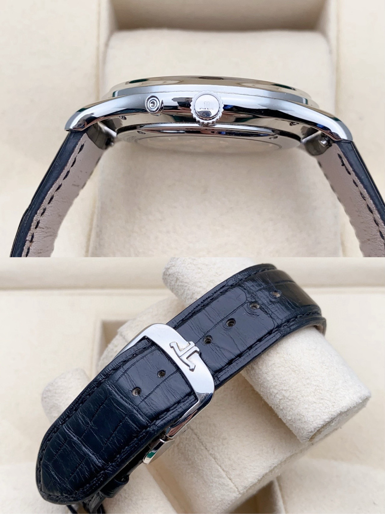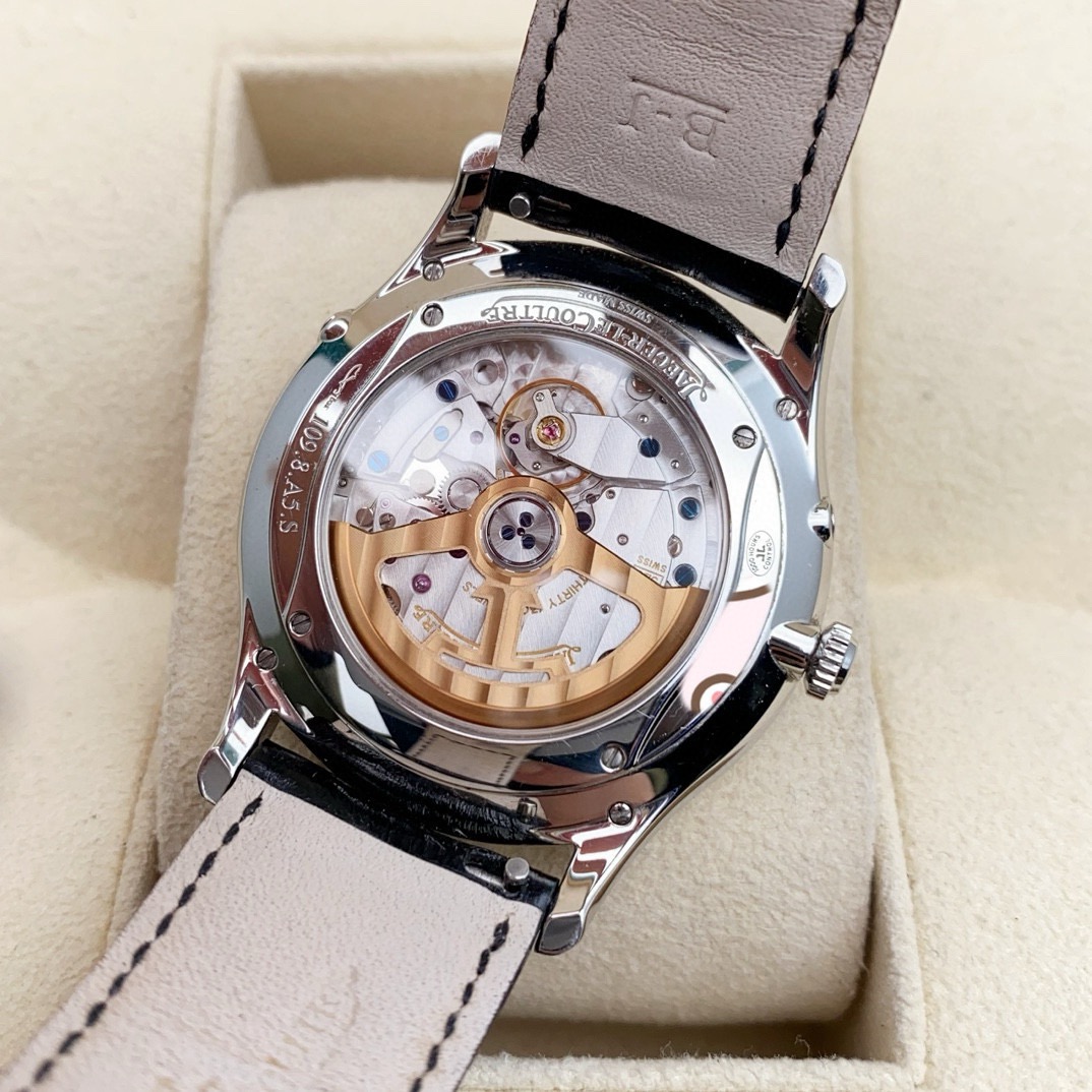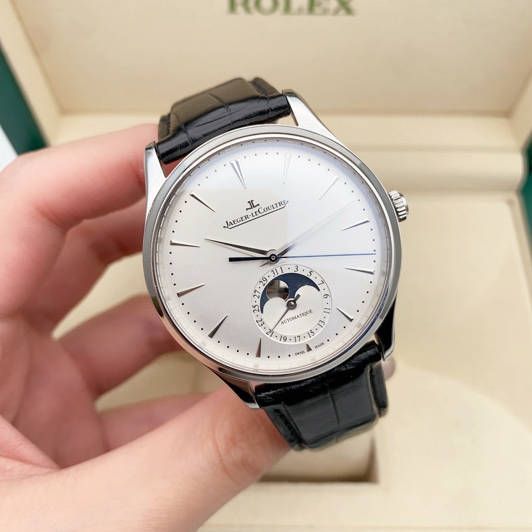 积家 大师系列1368430男士自动机械腕表,39毫米表径,精钢材质,新款大师月相,正装腕表首选,22年4月保卡,原始成色,延保八年,公价92000,现货好价!
