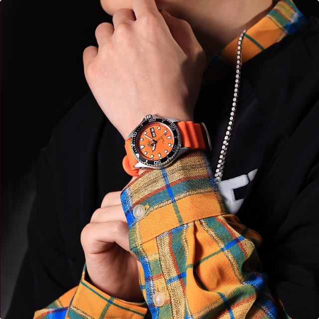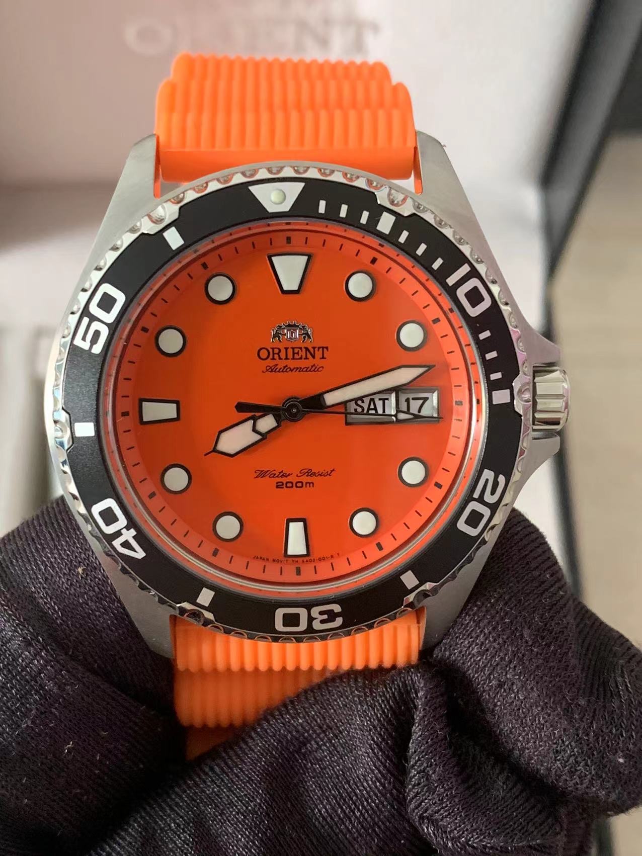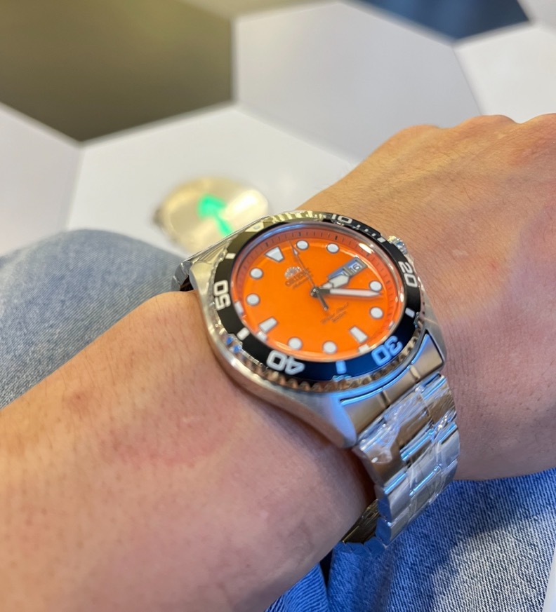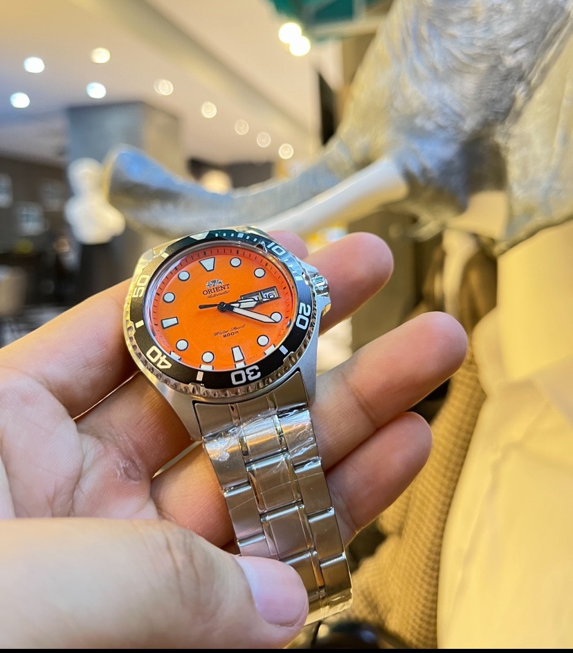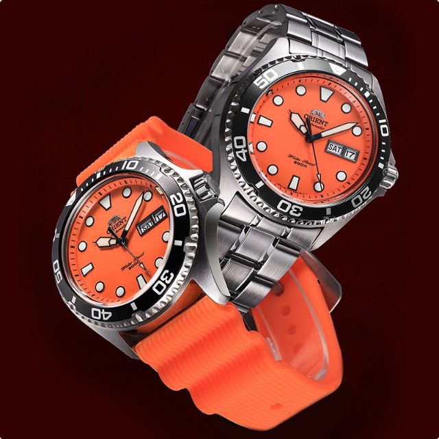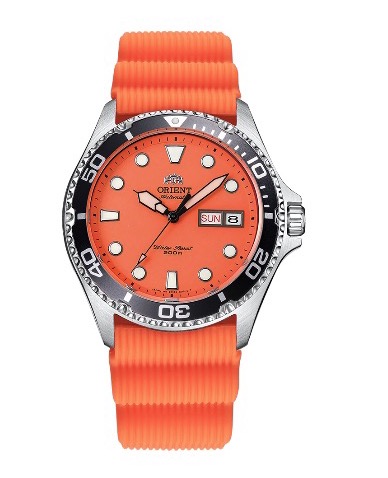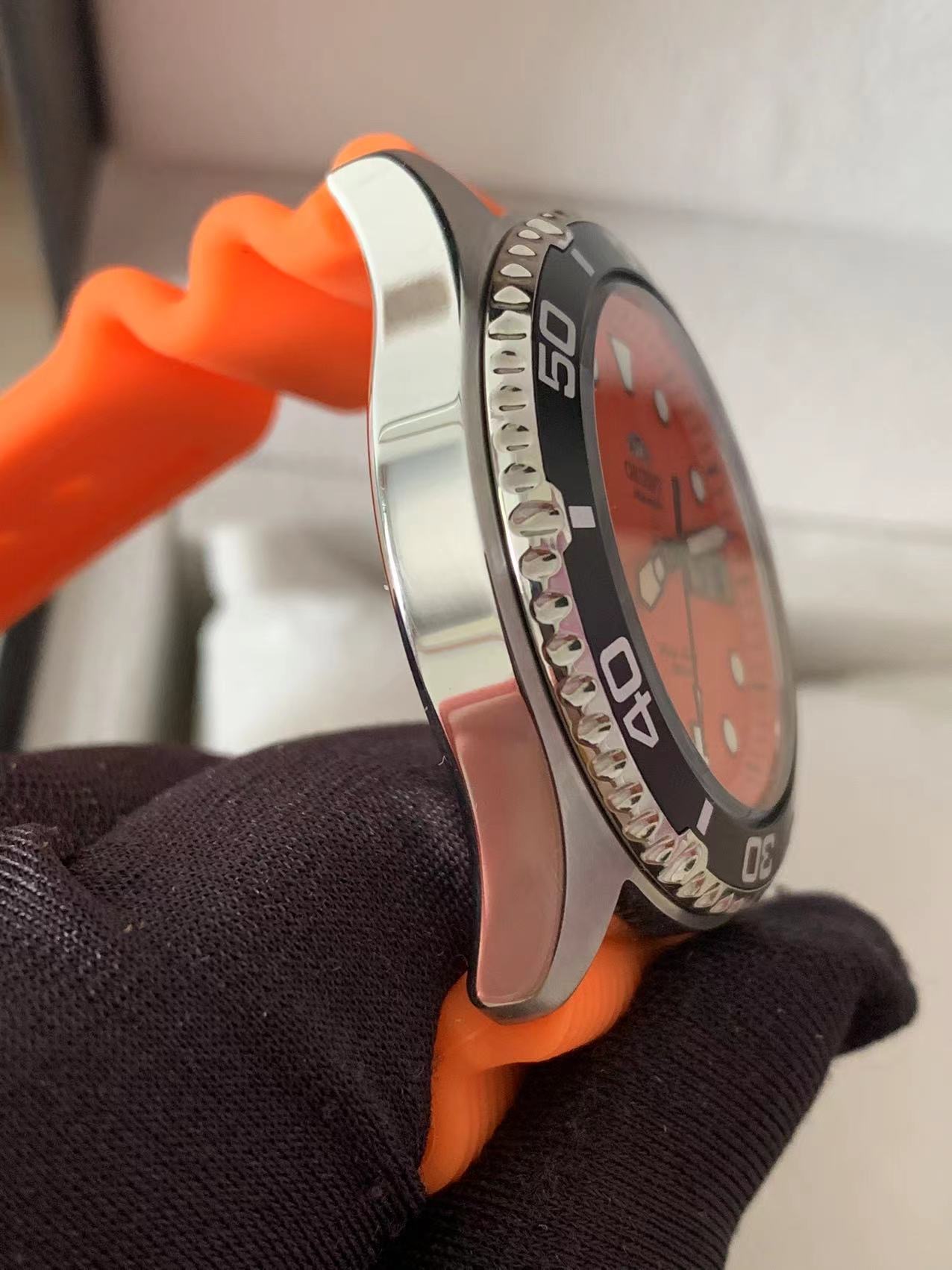 【橙点闪耀】 ORIENT东方双狮 圆点刻度水鬼200米防水时尚简约运动 自动机械机芯 不锈钢表带 日韩表 男表 41.5毫米橙色表盘 FAA02006M9专柜售价3500 全新全套近期保卡