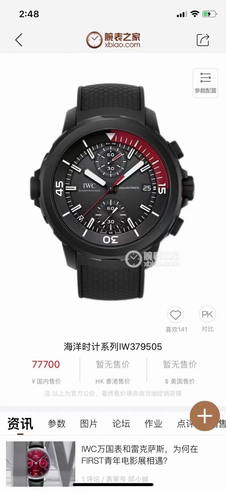 IWC万国表 海洋时计 IW379505 拉昆布雷火山特别版 限量500枚 自动机械 44mm 精钢橡胶涂层 计时 飞返/逆跳 日期显示 单表 极品成色 没佩戴几次 背膜还在 公价77700 ~