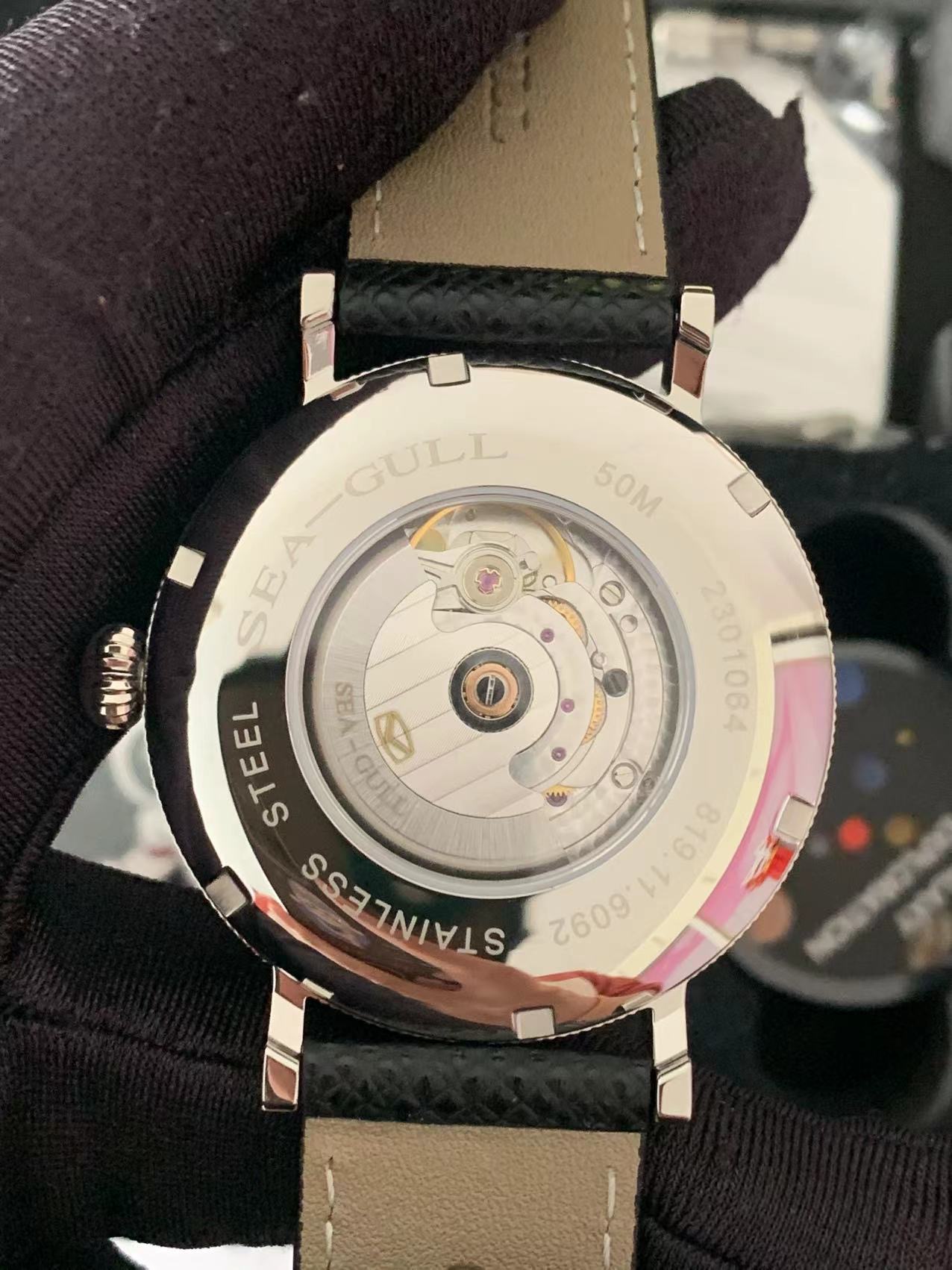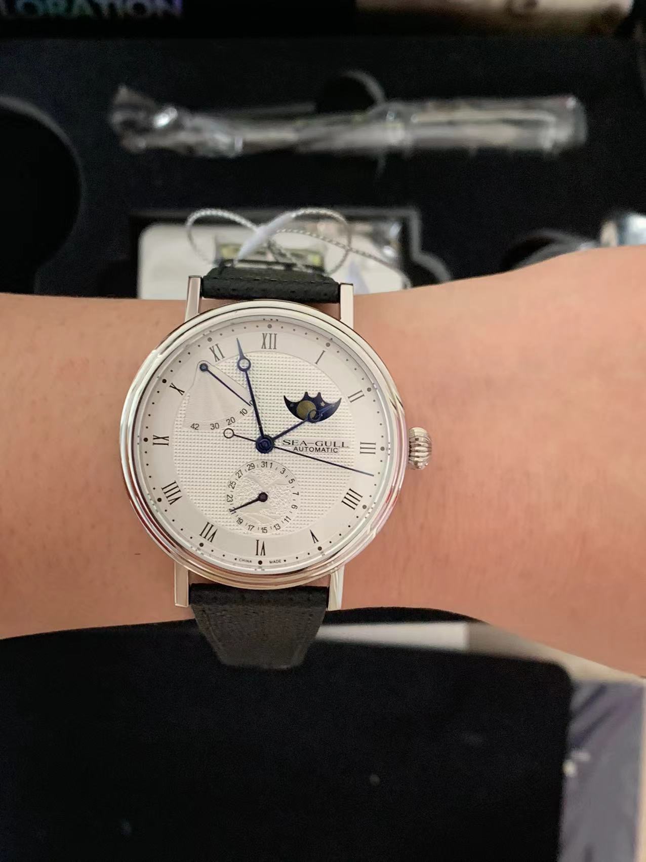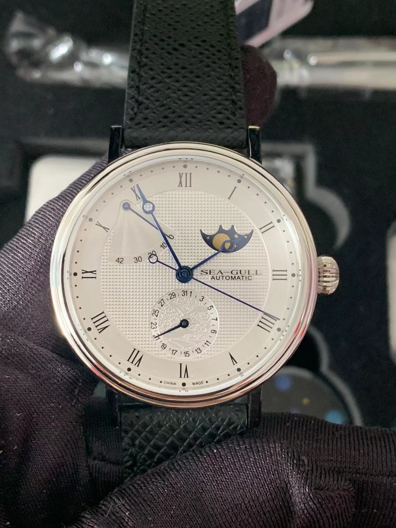 海鸥Sea-Gull 巨匠系列 月相多功能 自动机械机芯 真皮表带 国表 男表 41mm*41mm*41mm白色表盘 月相礼盒 819.11.6092专柜售价3400全新全套全国联保近期保卡