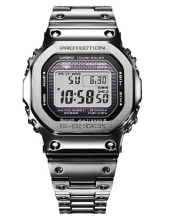 G-SHOCK B5000系列 金属进化小银砖 防震防水 六局电波蓝牙 光能石英机芯 日韩表 49.3*43.2mm 男表 银色表盘 GMW-B5000D-1专柜售价3690全新全套近期保卡