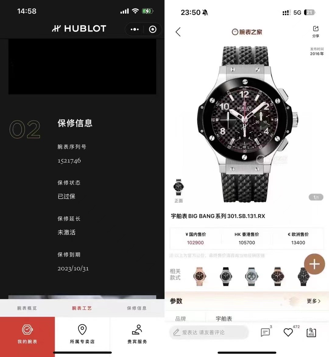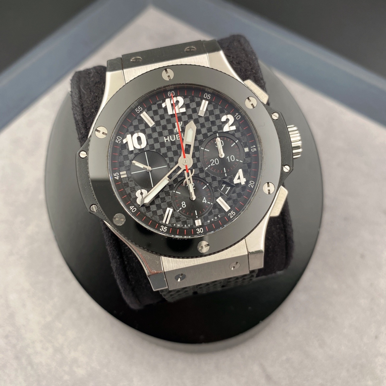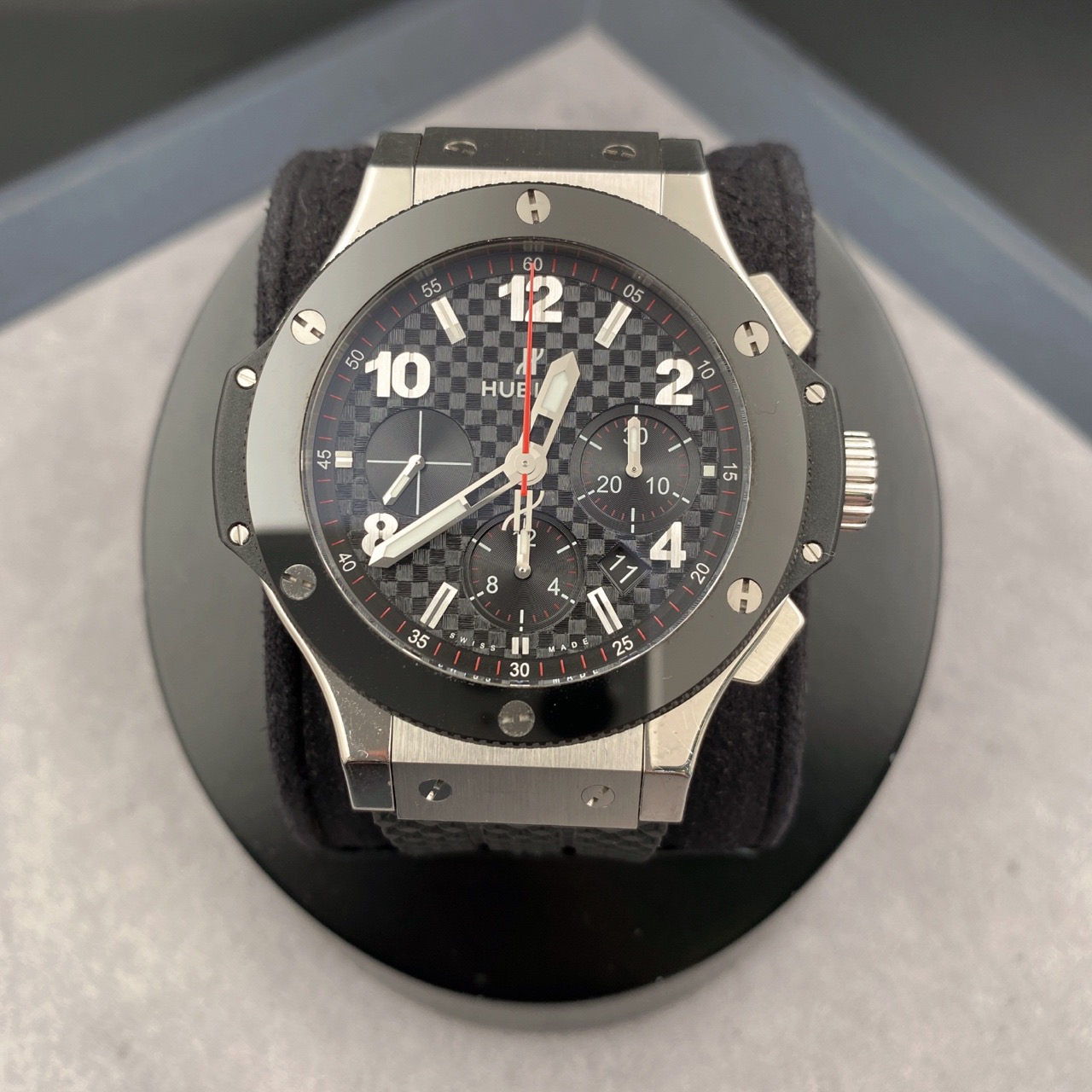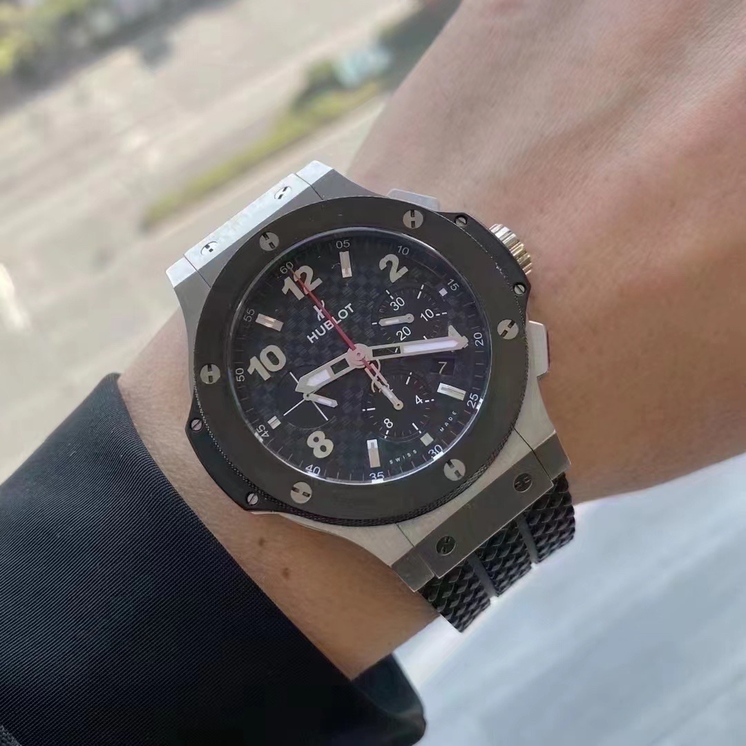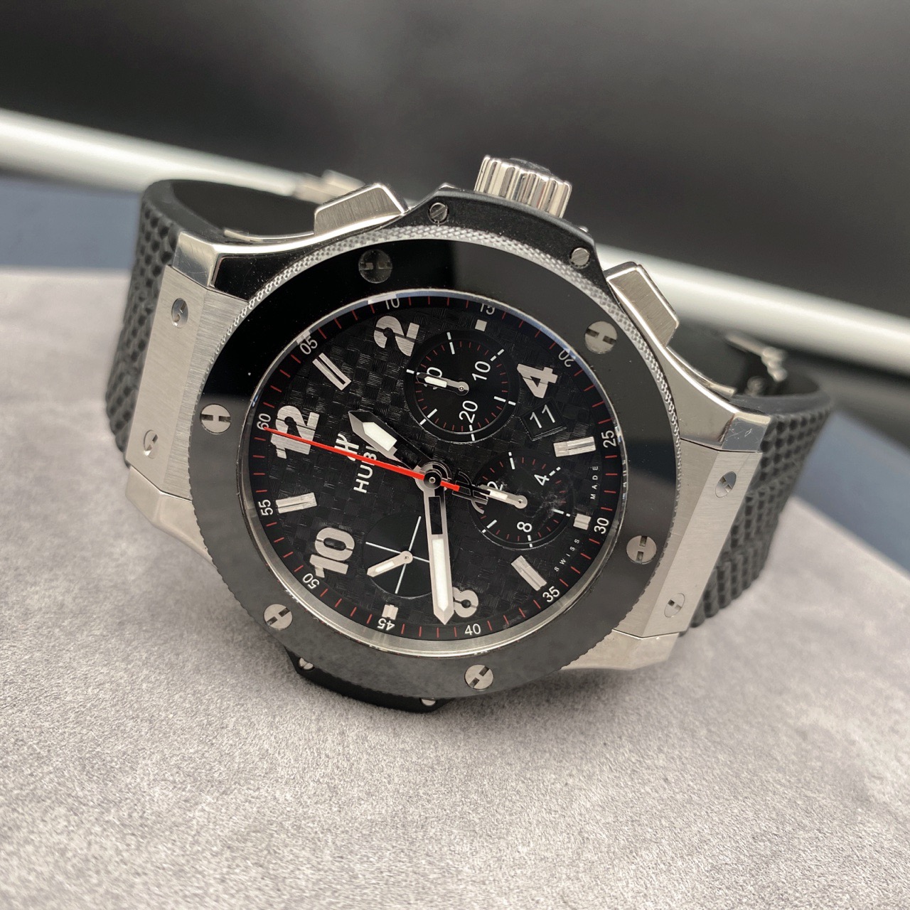 宇舶表BIG BANG 系列301.SB.131.RX自动机械男表,44mm表径。精钢材质,搭配陶瓷外圈,计时功能,碳纤维表盘 21年完美全套 国内公价102900元 店内现货好价分享秒发~