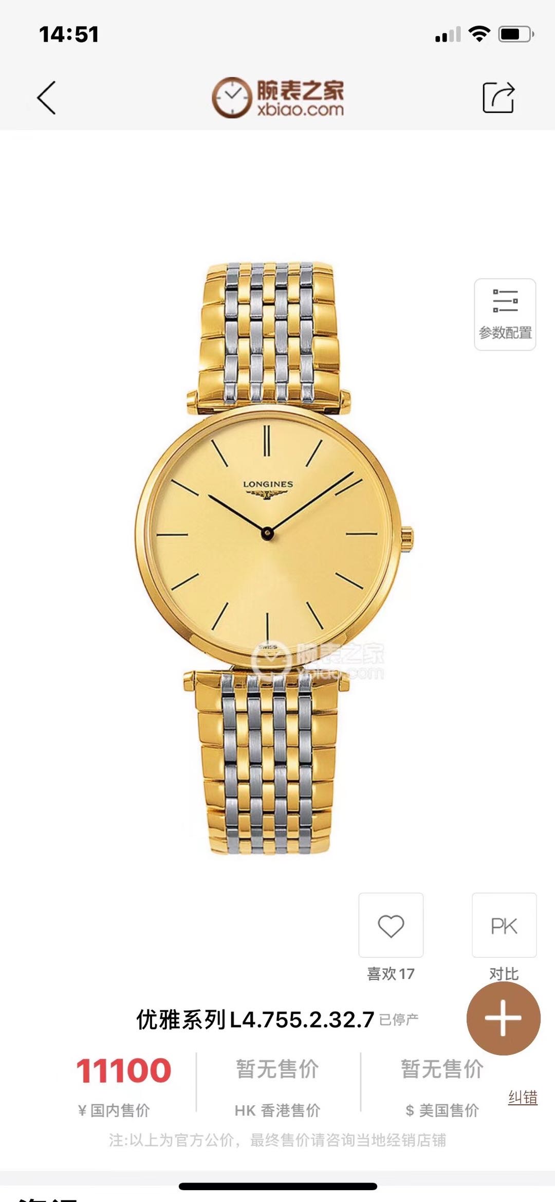 浪琴嘉岚L4.755.2.32.7石英中性