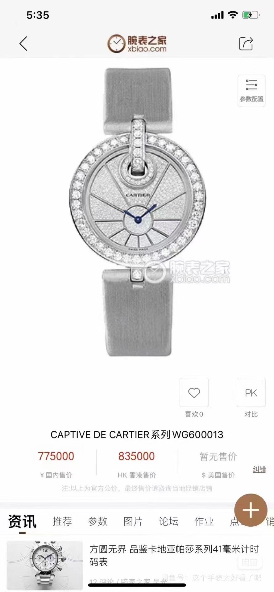 卡地亚 CAPTIVE DE CARTIER系列 WG600013 石英 35mm 18k白金满天星满钻材质 颜值款 上手超美22年保卡 专柜售价775000
