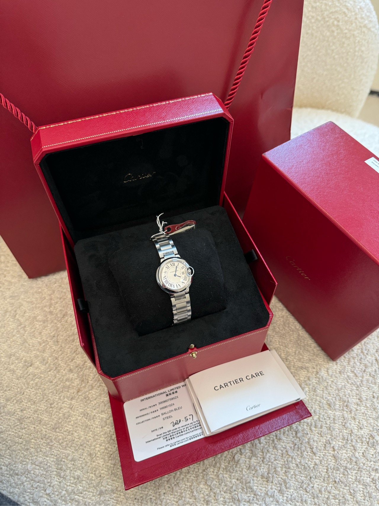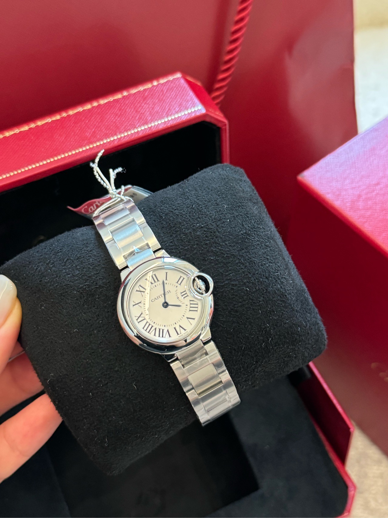 卡地亚 蓝气球系列 W69010Z4女士石英腕表,表径28毫米 罗马刻度 白盘剑型烤蓝针 热门畅销款 公价38900 店内20年全套现货好价 全新原膜带吊牌 ~