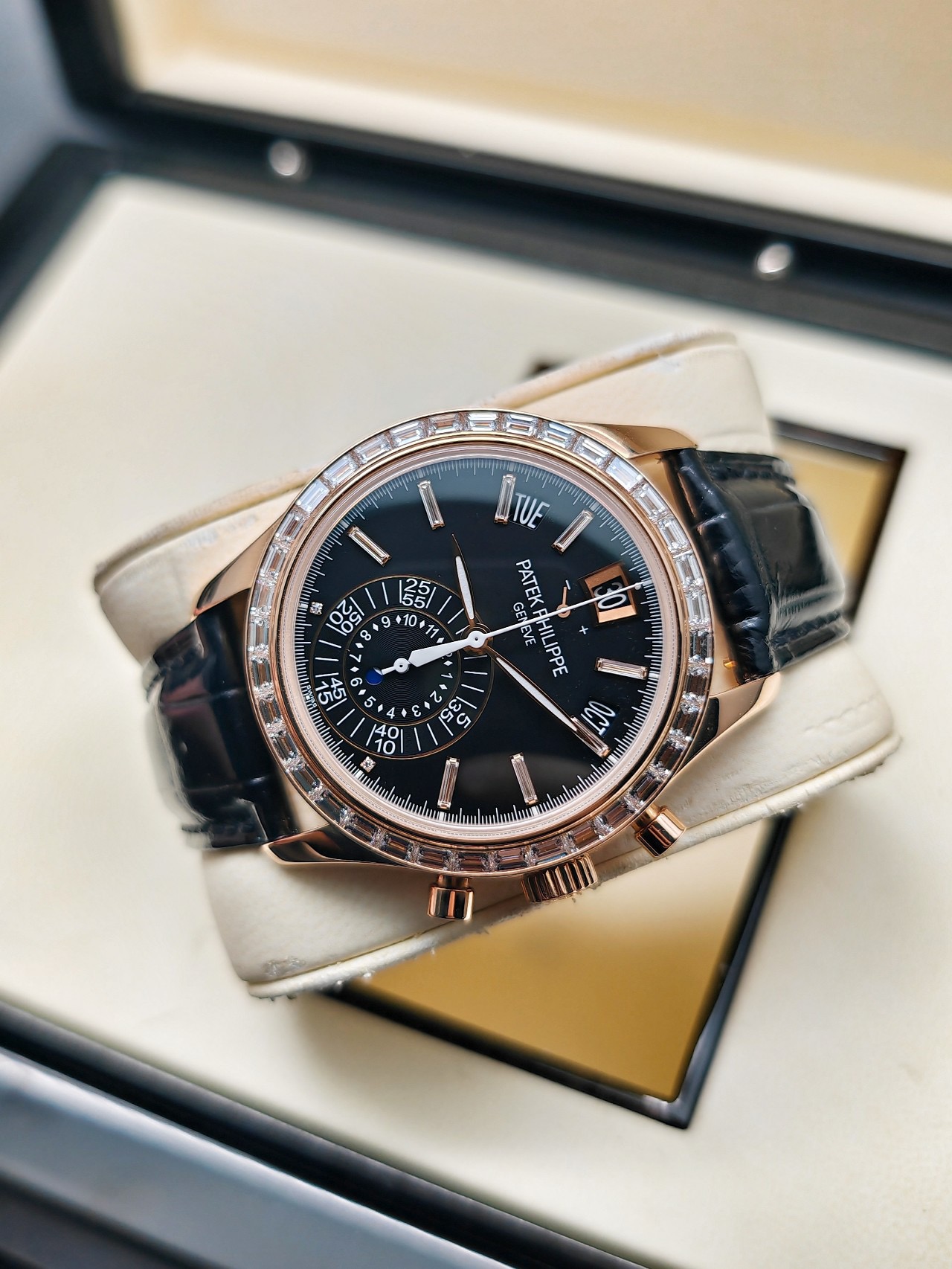 PATEK PHILIPPE百达翡丽5961R-010复杂功能时计系列,18k玫瑰金+T方钻,年历计时,40.5mm表径,公价142万,