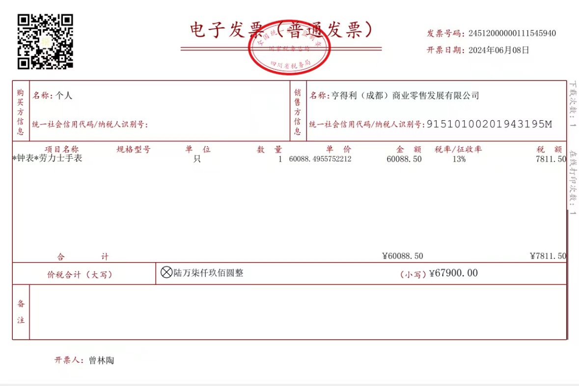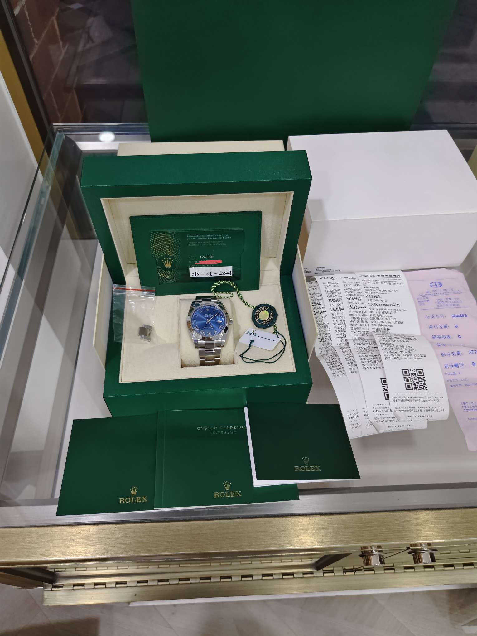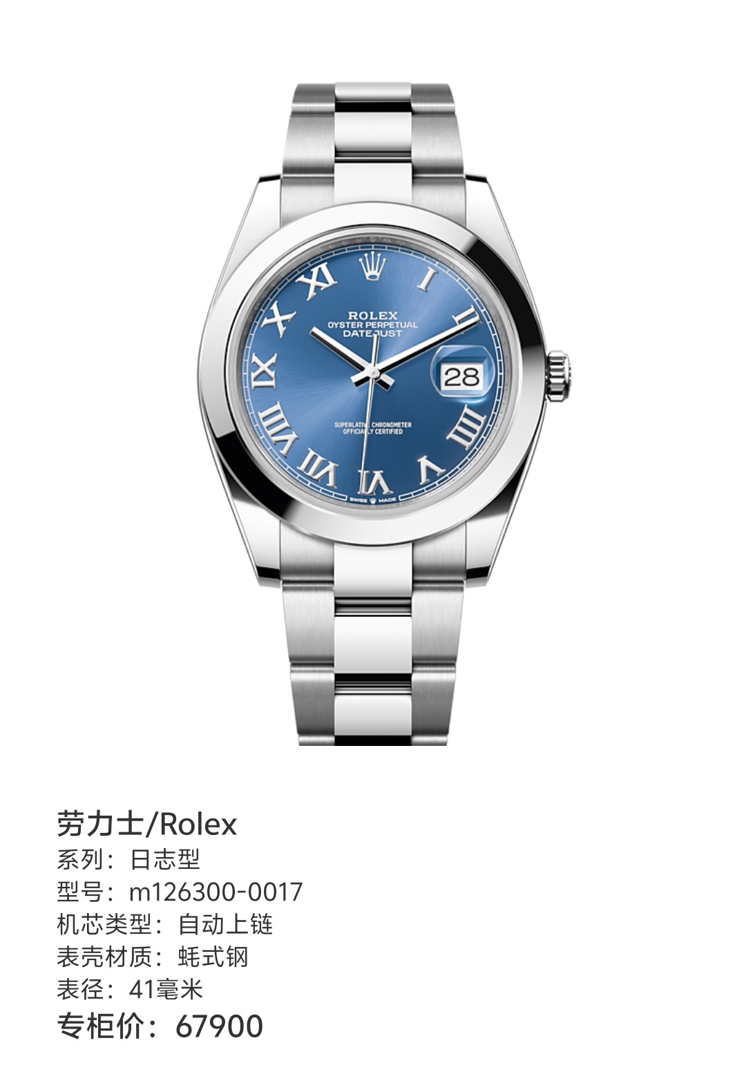 劳力士/Rolex 日志型 m126300-0017 自动上链 蚝式钢 41毫米 专柜价67900 24年6月8日国行大全套全长 有电子发票 仅试戴一天 大部分膜还在 二维码还在~