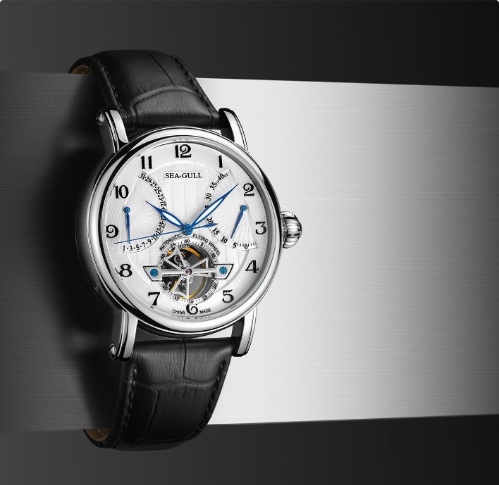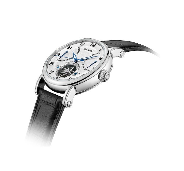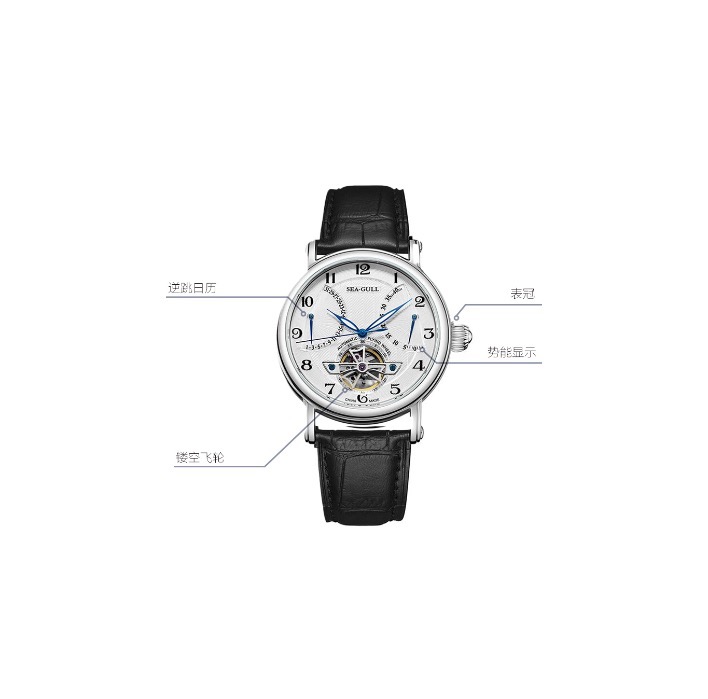 海鸥Sea-Gull 巨匠系列日历势能显示镂空飞轮自动机械机芯皮革表带国表男表白色表盘819.317 /819.316