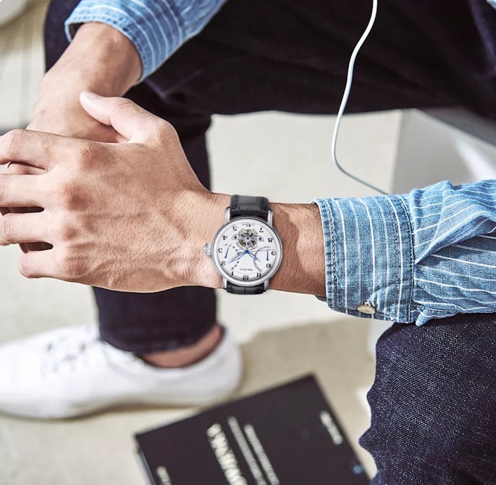 飞轮机芯 防刮耐磨自动机械镂空设计优质皮带