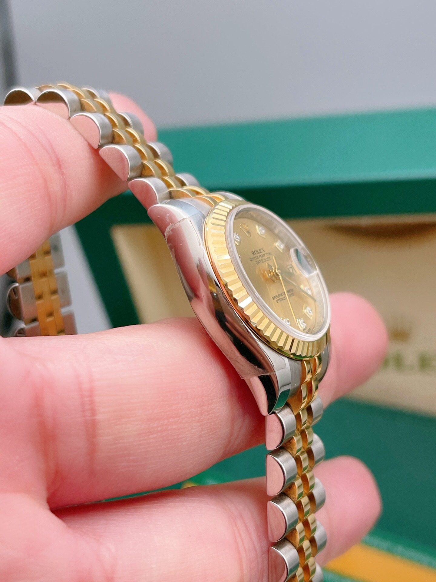 18K黄金,狗牙圈间金款,钻石刻度,表经26mm,专柜86800,15年全套仅上手2.3次,极品回收,极品巅峰状态