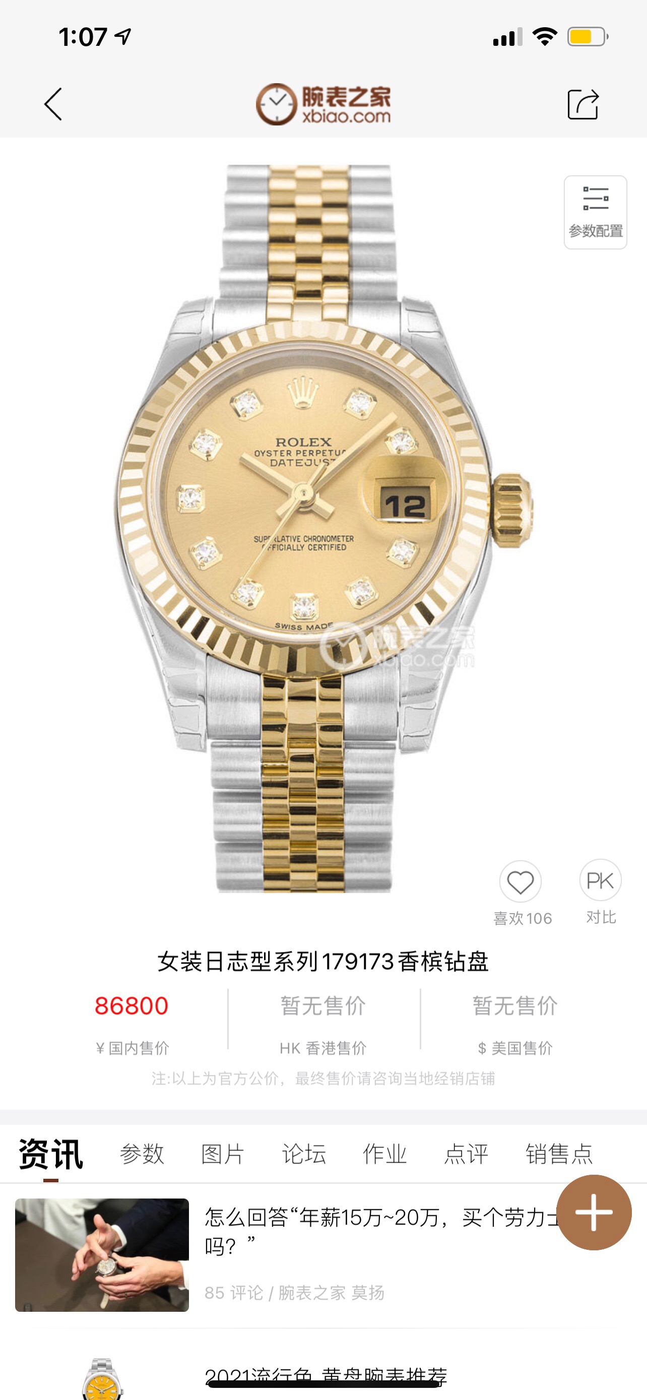 劳力士女装日志系列179173女表,