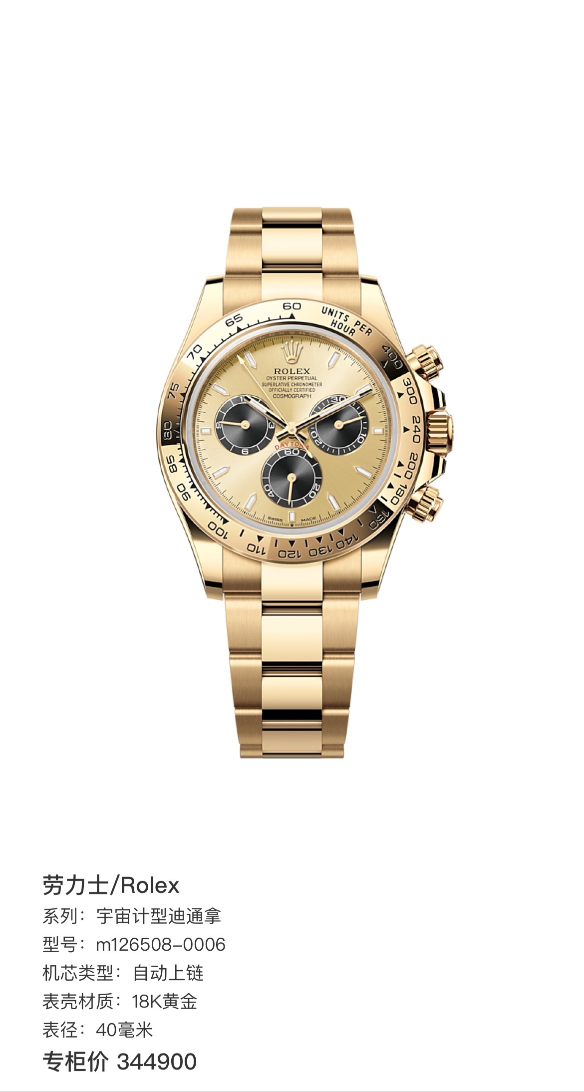 劳力士 迪通拿系列 全金余文乐 126508 自动机械 18k黄金 40毫米 专柜价344900 23年12月全套