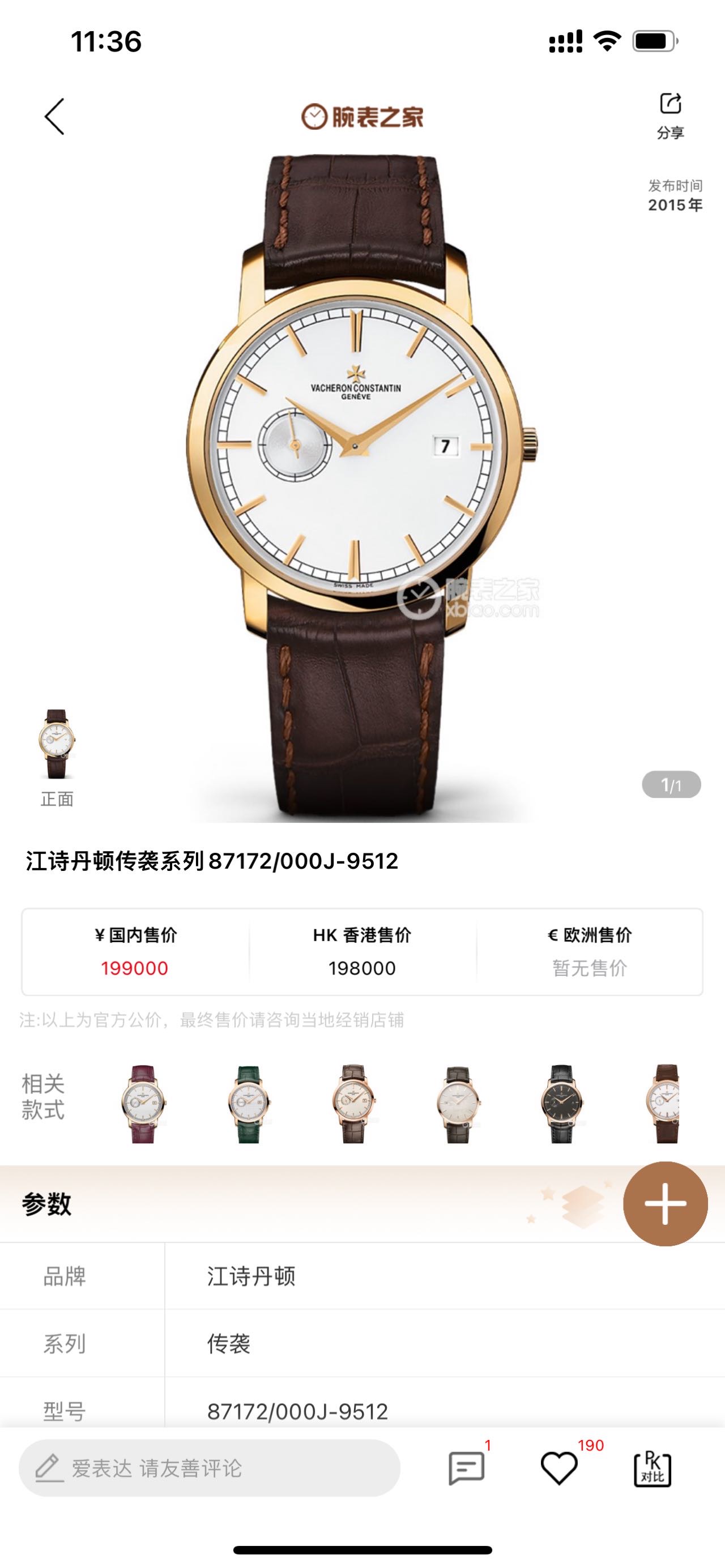江诗丹顿/Vacheron Constantin TRADITIONNELLE传袭系列 87172/000J-9512。自动上链 粉红金 38毫米 专柜价199000。现好价