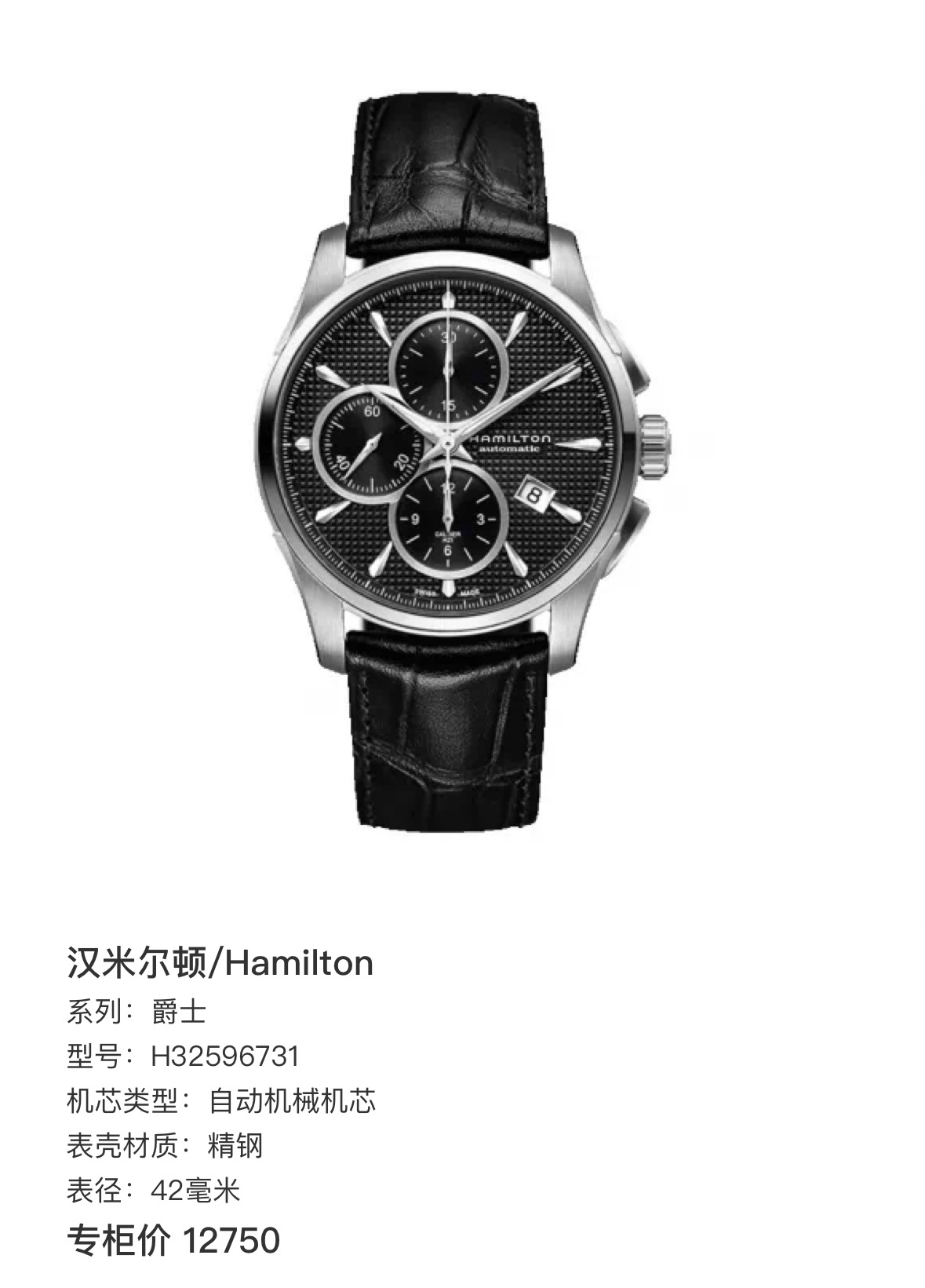 自动机械机芯 精钢 42毫米 专柜价 12750~